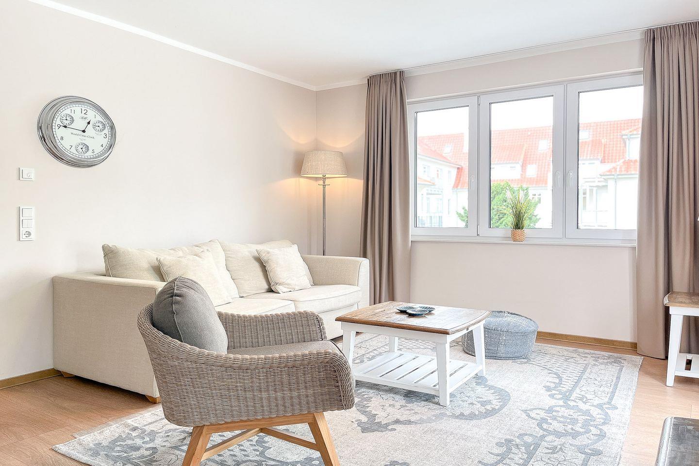 Die Ferienwohnung 45 im Baltischen Hof in Boltenhagen ist eine geschmackvolle 2-Zimmer-Wohnung für bis zu vier Personen.