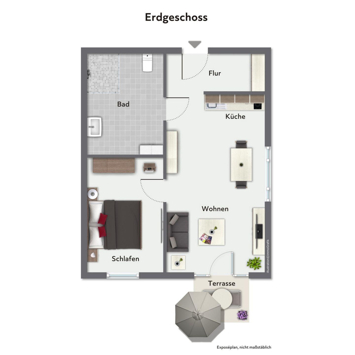 Das Apartment liegt im Erdgeschoss und bietet auf ca. 48?m² Wohnfläche eine geschmackvolle Einrichtung und eine gelungene Raumaufteilung – ideal für Paare, die Komfort und Nähe zum Strand suchen.