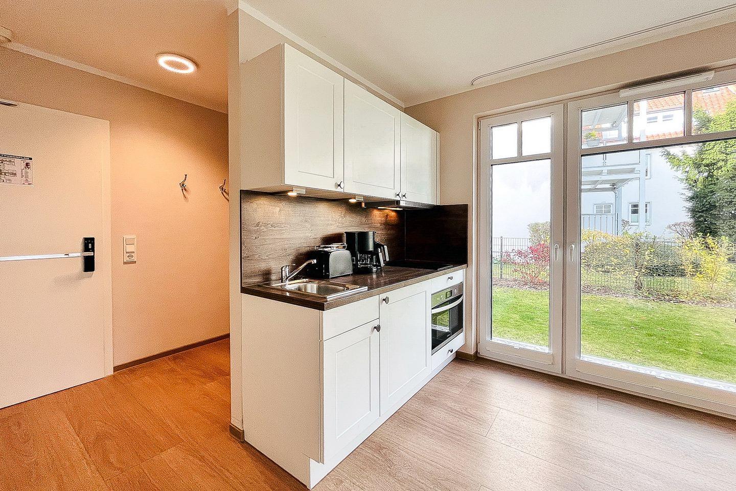 Die Ferienwohnung Nr. 18 in der strandnahen Anlage Baltischer Hof ist eine 2-Zimmer-Wohnung für bis zu 2 Personen und liegt im Erdgeschoss. Sie verfügt über ein Wohnzimmer mit integrierter Küchenzeile, ein Bad mit Dusche, ein Schlafzimmer und eine Terrasse.