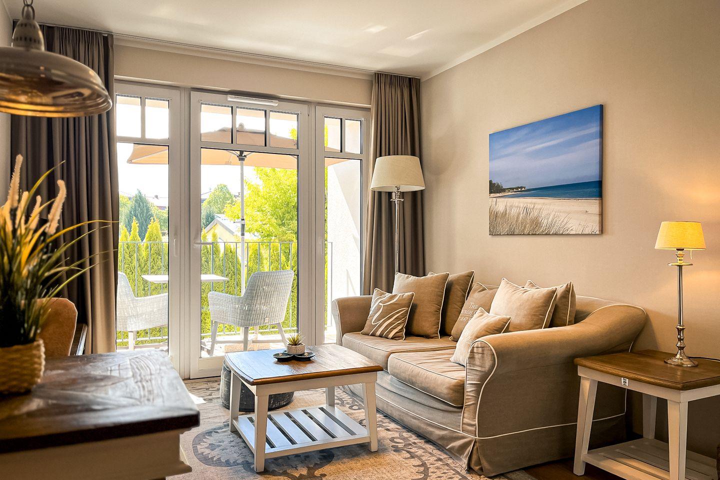Die Ferienwohnung 29 im Baltischen Hof in Boltenhagen ist eine geschmackvolle 2-Zimmer-Wohnung für bis zu zwei Personen.