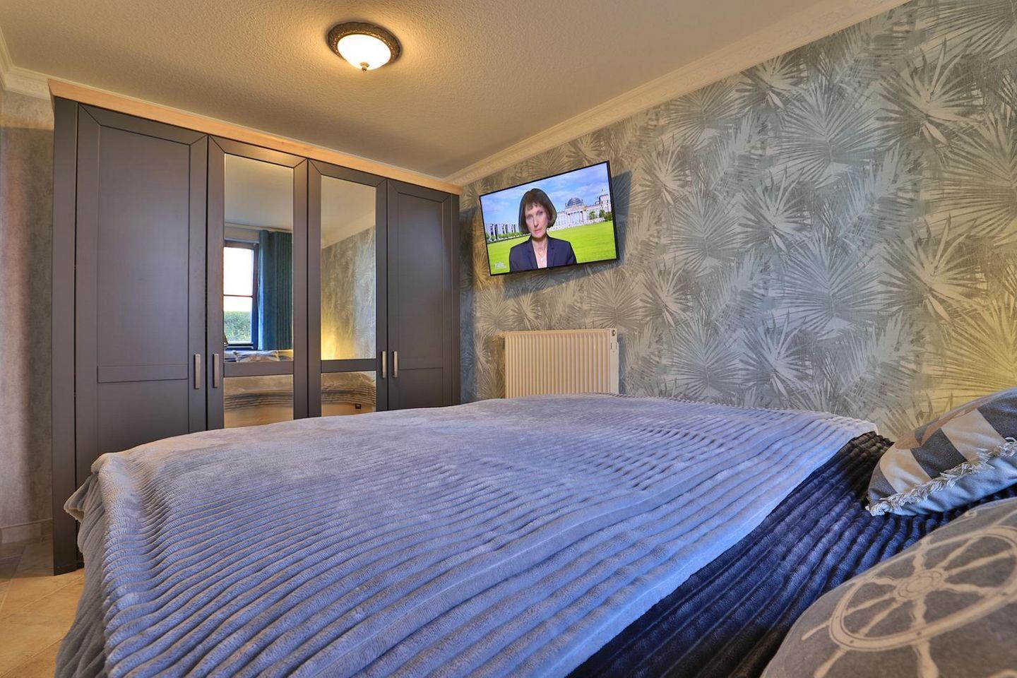Das Schlafzimmer ist mit Fliesen und einem Doppelbett ausgestattet. Für Deine Urlaubsgarderobe steht ein Kleiderschrank zur Verfügung. Im Schlafzimmer sowie im Wohnzimmer befinden sich Fliegengitter an den Fenstern.