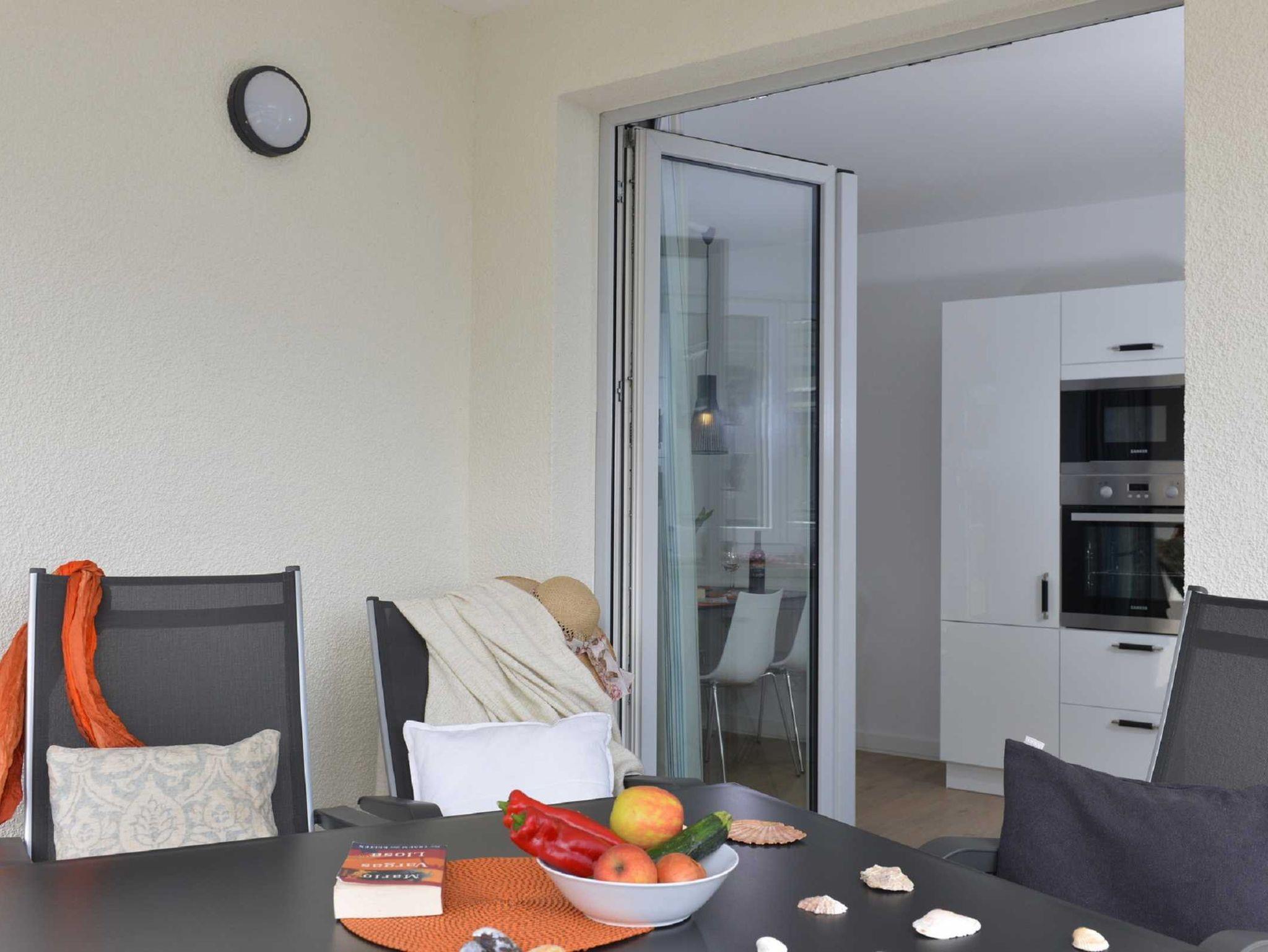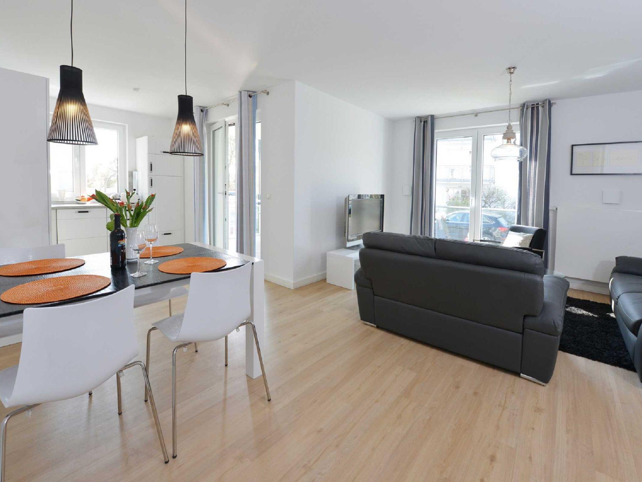 Das Domizil besitzt zwei Schlafzimmer mit jeweils einem Doppelbett (durchgehende Matratzen), einen großzügigen Wohnbereich mit integrierter Küche, eine Terrasse mit Blickrichtung zur Promenade/ Strand, ein Bad mit Dusche sowie ein Gäste-WC.