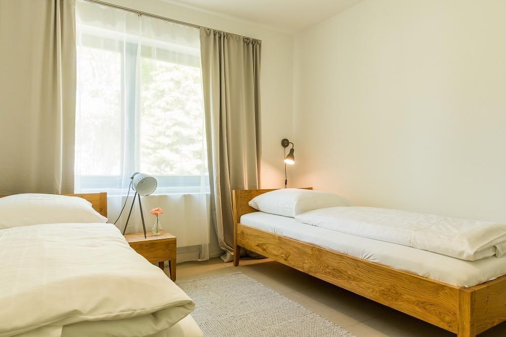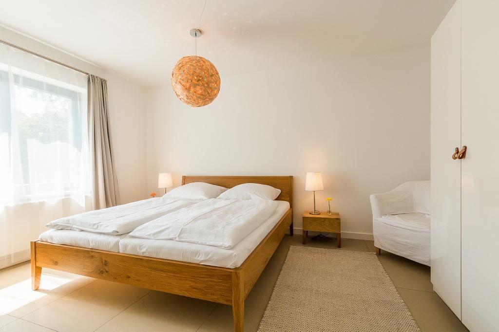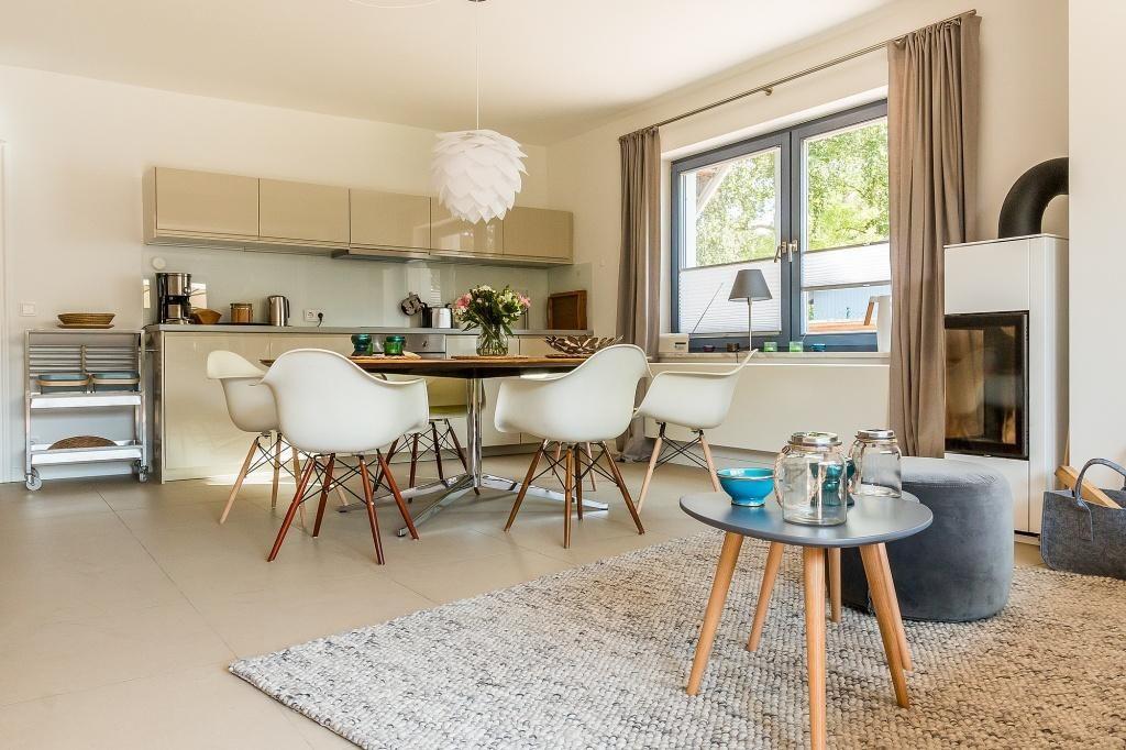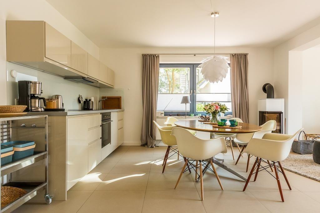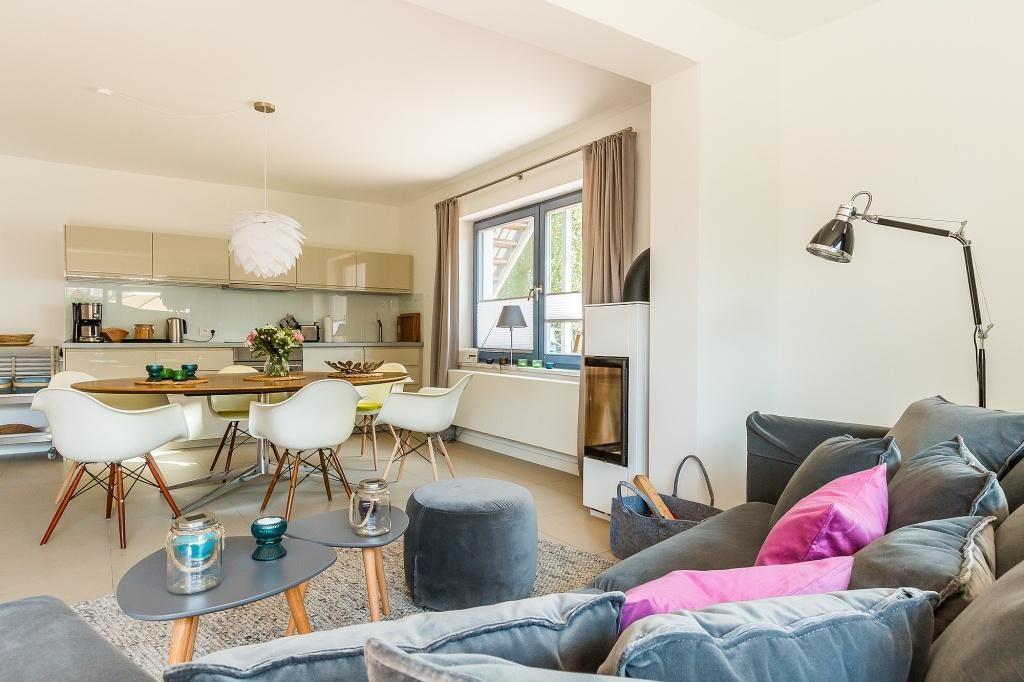 Die Erdgeschosswohnung begeistert durch ihren Mix aus schlichter Eleganz und skandinavischer Gemütlichkeit. In dem großzügigen Wohn- und Essbereich erwarten dich zwei gemütliche Sofas am Kaminofen und bodentiefe Fernster. Die hochwertige Küchenzeile ist im Wohnraum integriert und bietet dir zusammen mit dem Esstisch einen kommunikativen Raum zum Essen, Kochen und Klönen. Natürliche Materialien wie Holz und Rattan finden sich auch in den zwei modernen Schlafzimmern wieder, die mit einem Doppelbett und zwei Einzelbetten ausgestattet sind. Hier lässt es sich wunderbar vom Urlaub träumen. Ein Badezimmer mit Dusche/WC und Handtuchtrockner machen den Wohnkomfort perfekt.