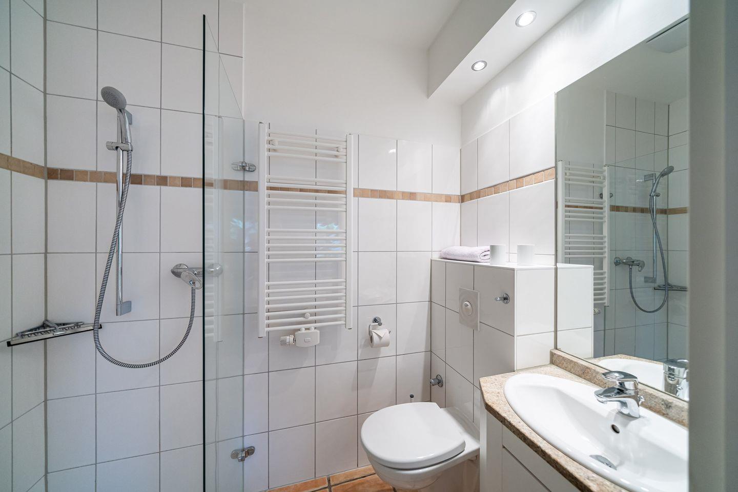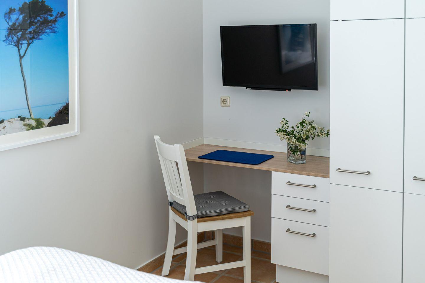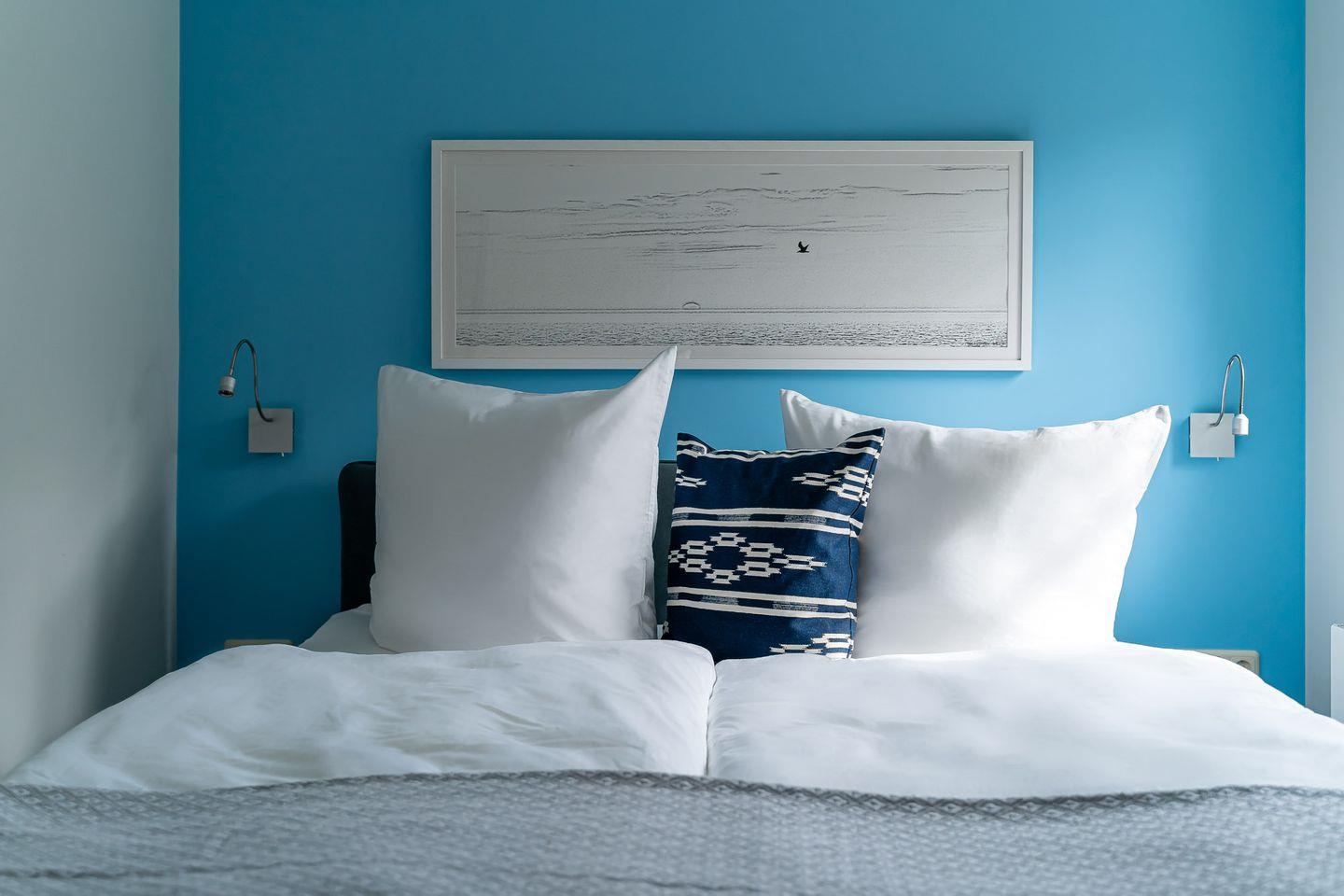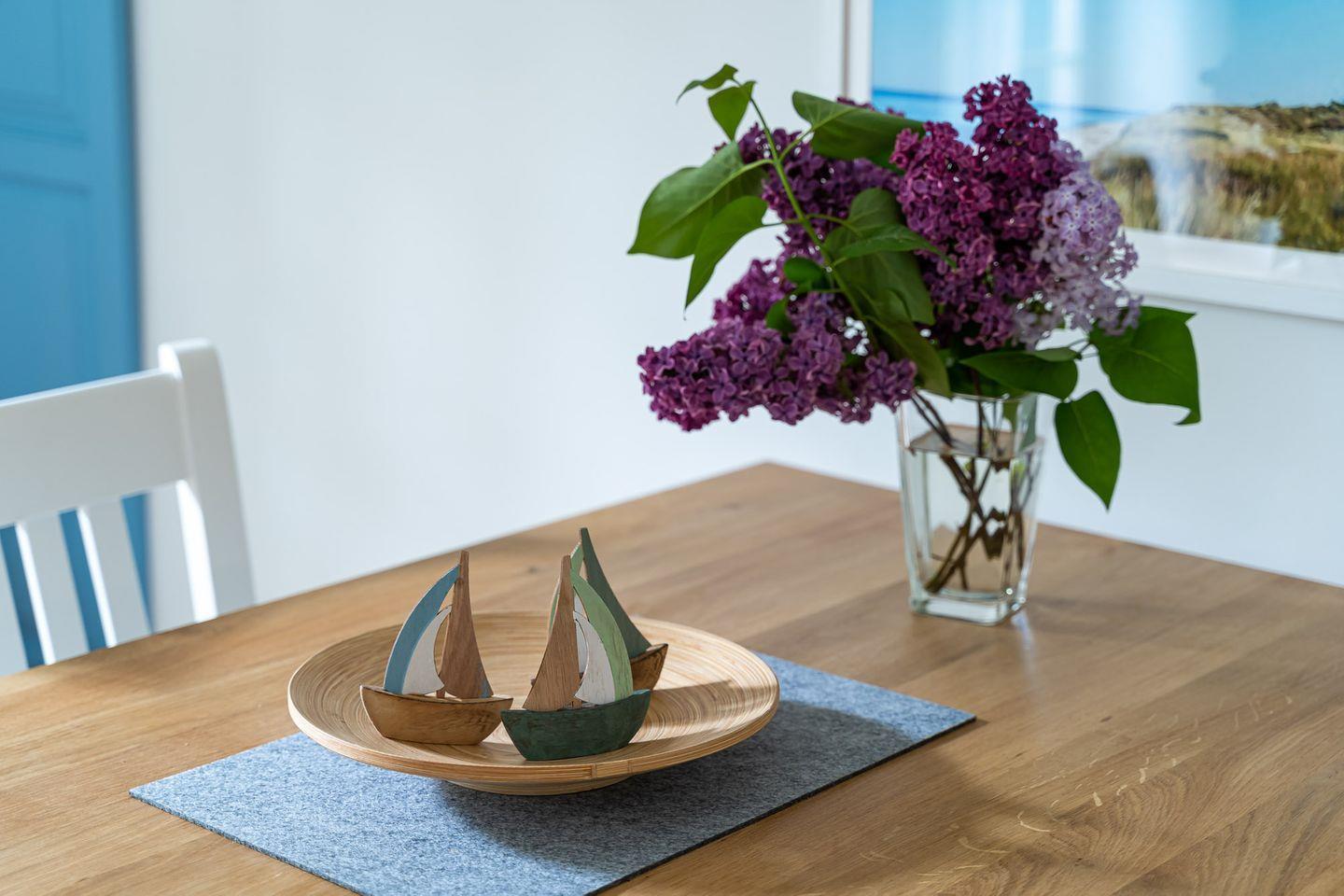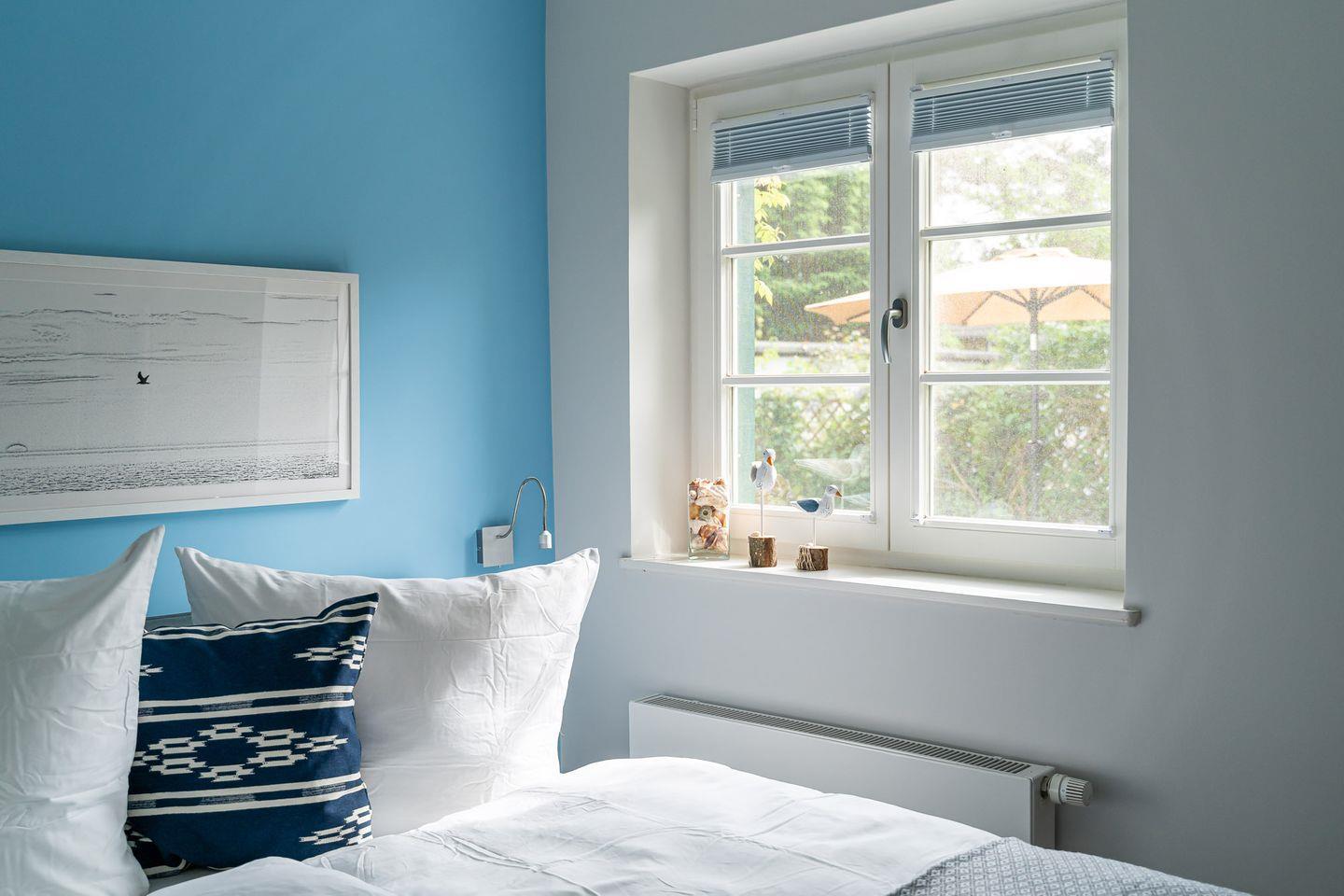 Die liebevoll eingerichtete Ferienwohnung „Glück“ ist durch maritimes Design und eine hochwertige Ausstattung geprägt. Der Wohnraum mit seinem gemütlichen Sofa und großen TV, der komfortabel ausgestatteten Küche und dem lieblich gestalteten Essbereich ist das Herzstück der Wohnung. Farben inspiriert von Himmel und Meer, natürliche Materialien und lichtdurchflutete Räume sorgen in der gesamten Wohnung für ein traumhaft schönes Urlaubs-Feeling. So auch im Schlafzimmer, das mit seinem hochwertigen Boxspringbett einen erholsamen Schlaf und heimeligen Rückzugsort garantiert. Das Badezimmer beinhaltet klassisch Dusche, WC und Handtuchhalter und rundet den Wohnkomfort für zwei oder drei Personen mit und ohne Hund ab. „Glück“ für jeden, der hier seinen Urlaub verbringt.