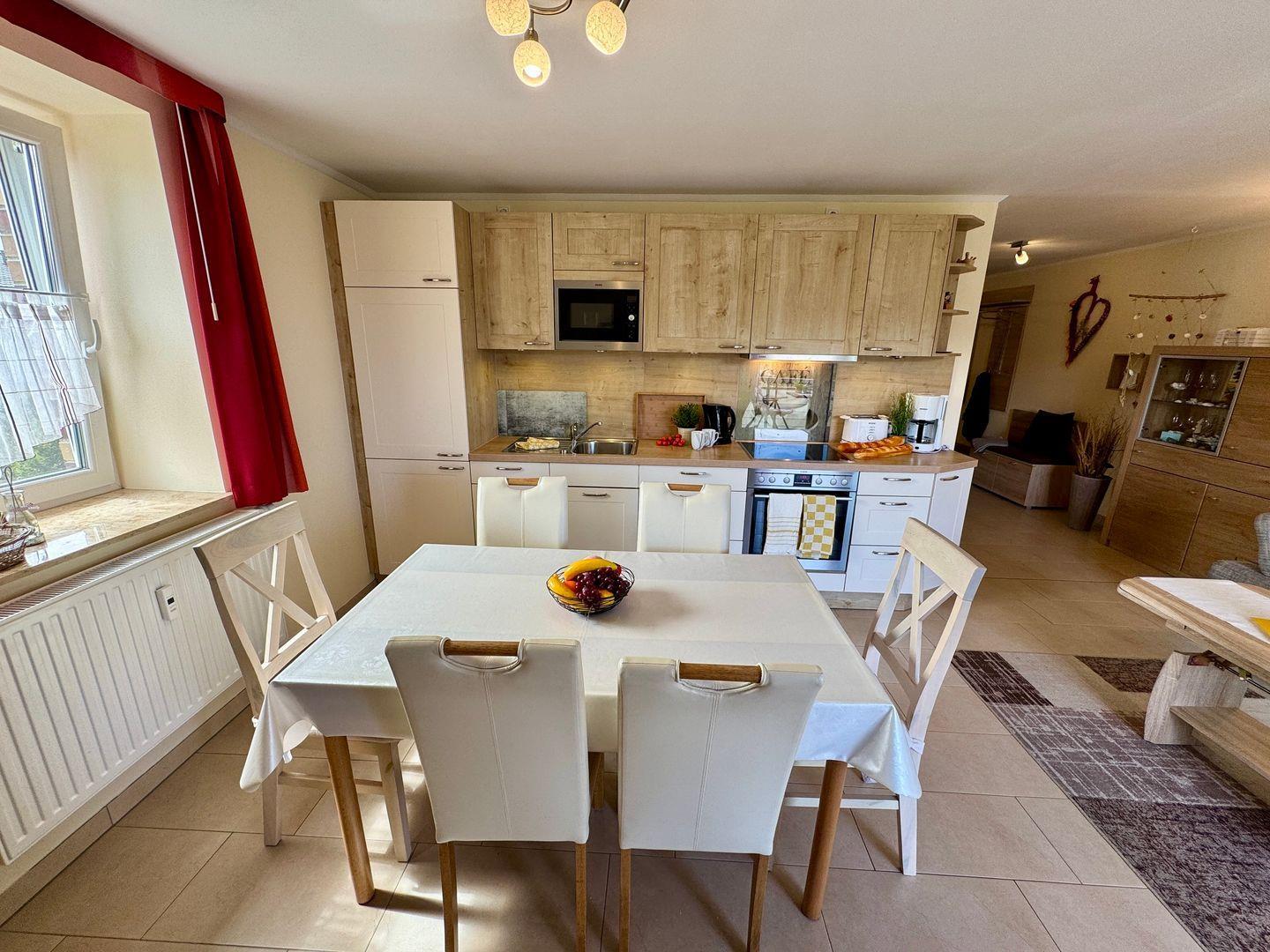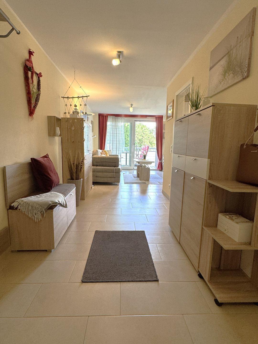 Das Appartement „Ostseeperle“ befindet sich im 1. Obergeschoss des Hauses und ist sowohl über die Treppe als auch bequem mit dem Fahrstuhl erreichbar. Auf dem Nord-Balkon können Sie entspannen und frische Luft genießen. Mit einer Größe von 59 qm bietet das Appartement Platz für bis zu 5 Personen. Es verfügt über ein Wohnzimmer mit einer Schlafcouch für 2 Personen sowie einen zusätzlichen Schlafsessel, der eine weitere Schlafgelegenheit bietet. Die praktische Küchenzeile ermöglicht es, Mahlzeiten zubereiten und sich während des Aufenthalts selbst zu verpflegen. Das Schlafzimmer ist mit einem komfortablen Doppelbett ausgestattet, das für erholsamen Schlaf sorgt und zum Entspannen einlädt. Das Badezimmer ist mit einer Dusche, einem WC und einer Waschmaschine ausgestattet, sodass Sie auch längere Aufenthalte bequem genießen können. Der Pkw-Stellplatz befindet sich direkt am Haus. Haustiere sind in diesem Appartement nicht gestattet, ebenso wenig wie das Rauchen. Für Ihre Kommunikation steht Ihnen kostenloses WLAN zur Verfügung, damit Sie immer mit Ihren Lieben in Kontakt bleiben können.