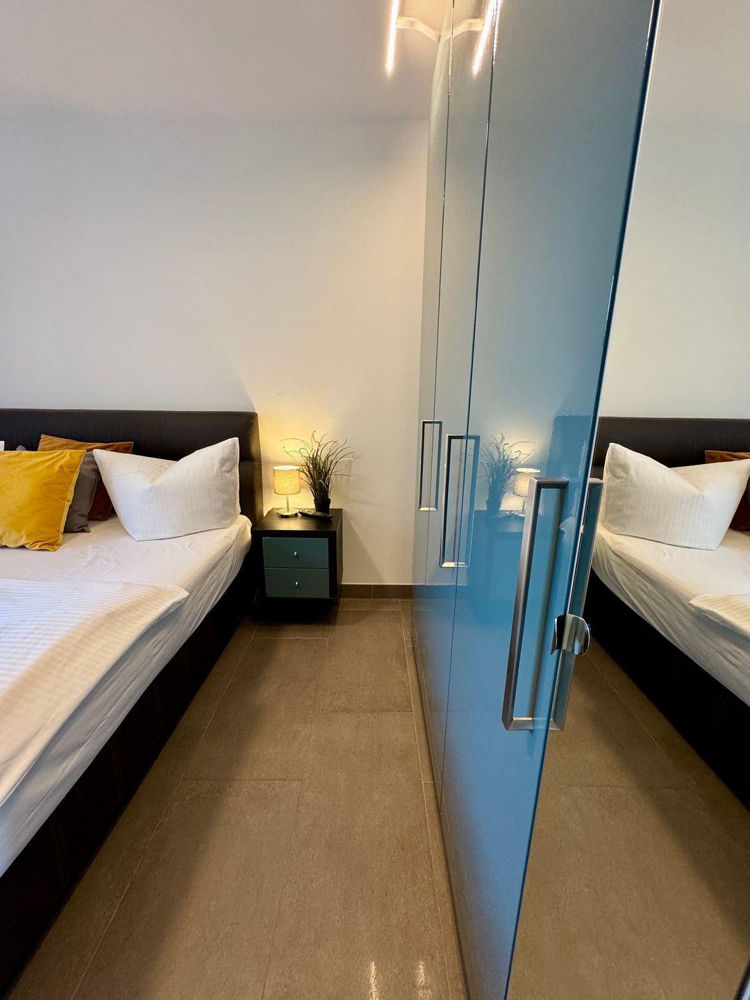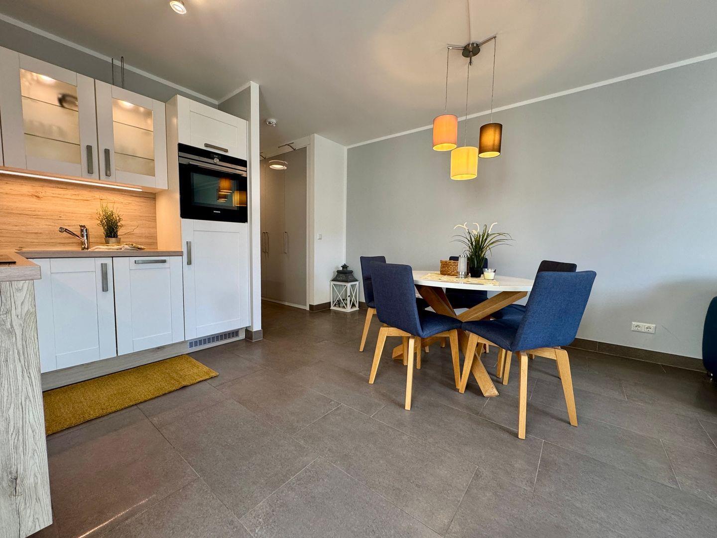 Im Wohnzimmer erwartet Sie eine bequeme Schlafcouch, die tagsüber als gemütliche Sitzgelegenheit dient und abends eine zusätzliche Schlafmöglichkeit für 2 Personen bietet. Die integrierte Küchenzeile ermöglicht es Ihnen, gemeinsam zu kochen und Mahlzeiten zu genießen, ohne den geselligen Raum verlassen zu müssen. Das Appartement verfügt über zwei Schlafzimmer: eines mit einem Doppelbett und das andere mit einem Einzelbett. So haben alle Gäste ihre eigene Rückzugsmöglichkeit für eine erholsame Nachtruhe. Der Süd-Balkon lädt dazu ein, die Sonne in vollen Zügen zu genießen – ideal für entspannte Stunden im Freien. Ein stellplatz für Ihr Fahrzeug befindet sich direkt innerhalb der Anlage. Haustiere sind leider nicht gestattet, und das Rauchen ist im Appartement nicht erlaubt. Für Ihre digitale Kommunikation steht Ihnen während Ihres Aufenthalts kostenloses W-LAN zur Verfügung.