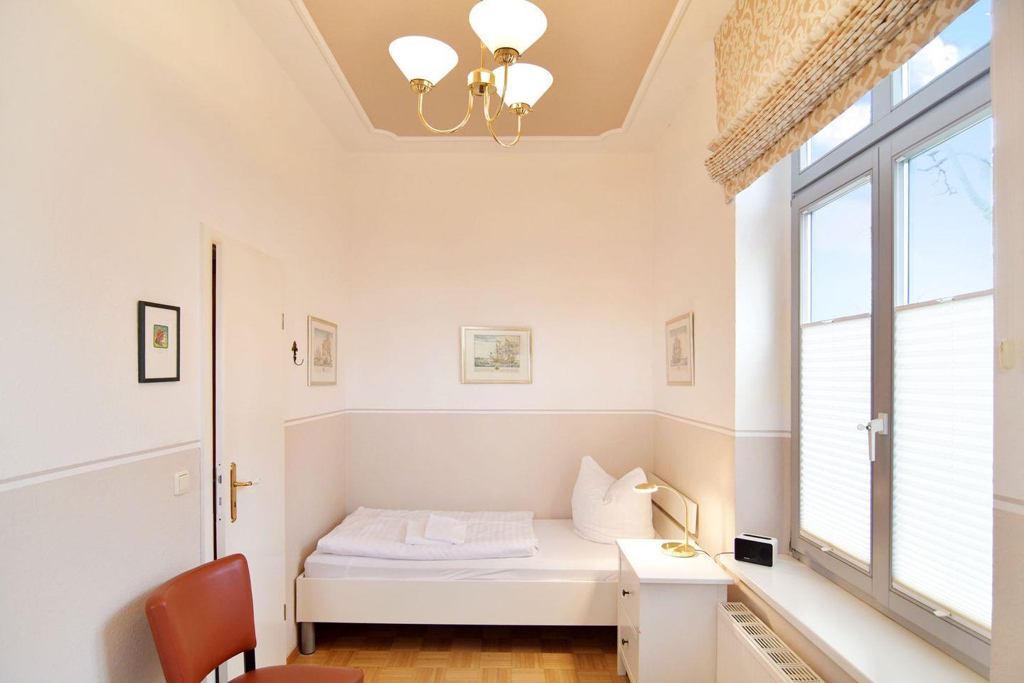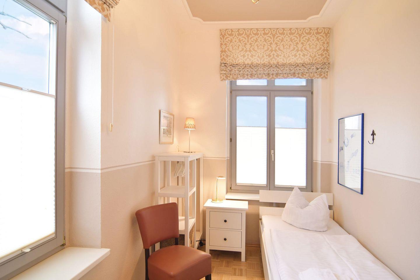 Die Villa Schering wurde nach der Wiedervereinigung im Stil der Bäderarchitektur renoviert und liegt zusammen mit dem Haus am Kliff in erster Reihe direkt an der Steilküste zur Ostsee auf der alten Düne dem "Kulm". Das 70 m² große Appartement befindet sich im Ergeschoss der Villa und verfügt neben einer sehr großen Süd-Terrasse und eigenen Gartenbereich mit Strandkorb über ein großzügiges Wohnzimmer mit voll ausgestatteter Küchenzeile und Essplatz, ein Duschbad und zwei Schlafzimmer (Doppelbett und zwei Einzelbetten). Es stehen ein PKW-Stellplatz und kostenfreies WLAN zur Verfügung. Haustiere sind auf Anfrage gestattet.