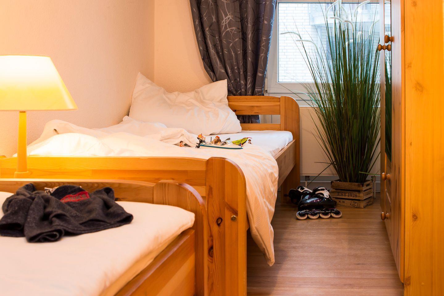 Die Wohnung "Sandburg" hat eine Wohnfläche von 63qm und ist ganzjährig zu mieten. Die exklusive Nichtraucherwohnung bietet Platz für 4 Personen in 3 Zimmern: 1 Schlafzimmer mit Doppelbett und TV, 1 Schlafzimmer mit 2 Einzelbetten, Wohn-Esszimmer mit TV, DVD, Radio/CD und Balkon mit Gartenmöbel zur Seeseite. Vollausgestattete Küche: Geschirrspüler, Mikrowelle, Kühl-Gefrierkombination, Ceranherd mit Backofen sowie diverse Kleingeräte(Kaffeemaschine, Wasserkocher, Toaster usw.) und ein Tageslichtbad mit Dusche/WC.