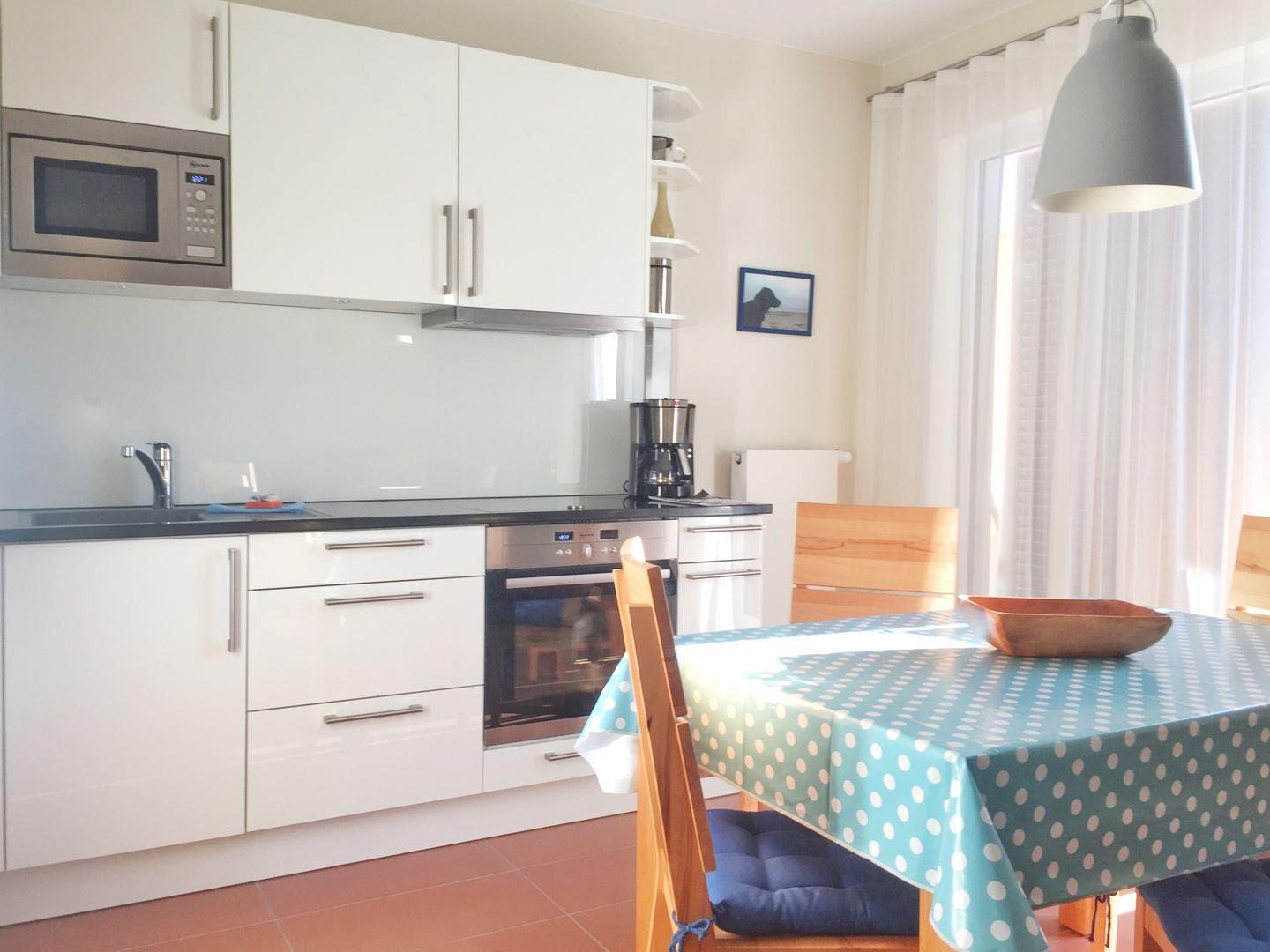 Das Nichtraucherappartement "Amber" befindet sich in der ersten Etage und ist über eine Treppe oder einen Fahrstuhl zu erreichen. Es ist etwa 50 qm groß, bietet Ihnen Schlafmöglichkeiten für bis zu 3 Personen und heißt auch Ihren vierbeinigen Begleiter herzlich willkommen. Die Ferienwohnung verfügt über einen harmonisch eingerichteten Wohnbereich mit Schlafcouch, Flachbildfernseher, Essbereich und voll ausgestatteter Wohnküche. Eine Geschirrspülmaschine, ein Ceranherd mit Backofen und eine Mikrowelle gehören hier neben diversem Geschirr, Besteck und Küchenutensilien zur Grundausstattung. Eine breite Fensterfront ermöglicht Ihnen den Zugang zum sonnigen Südbalkon, der natürlich über Terrassenmöbel und über einen Strandkorb verfügt. Von hieraus können Sie sogar einen kleinen Blick auf die nahe Ostsee erhaschen. Im hellen Schlafzimmer des charmanten Appartements finden Sie ein Doppelbett mit Nachttischen und einen Kleiderschrank. Das freundliche Badezimmer verfügt über eine Dusche, einen Waschtisch und natürlich ein WC. Weitere Annehmlichkeiten für die Feriengäste des Appartements sind ein kostenfreier PKW Stellplatz sowie ein kostenfreier WLAN-Zugang.
