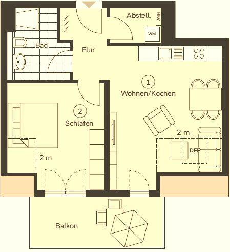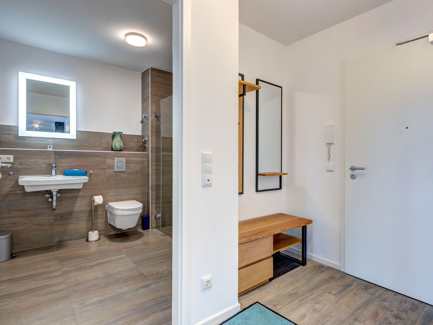 Die Ferienwohnung erstreckt sich über 57 Quadratmeter und bietet Platz für bis zu vier Gäste. Das Wohnzimmer ist ein Rückzugsort mit bequemer Schlafsofaecke und großen Fenstern.Die voll ausgestattete Küche ermöglicht Ihnen, kulinarische Köstlichkeiten zuzubereiten, die Sie dann auf dem sonnigen Balkon genießen können.Die Schlafzimmer sind ein Ort der Ruhe und Entspannung. Das komfortable Boxspringbett verspricht erholsame Nächte. Das Badezimmer ist modern gestaltet, mit einer geräumigen Dusche.