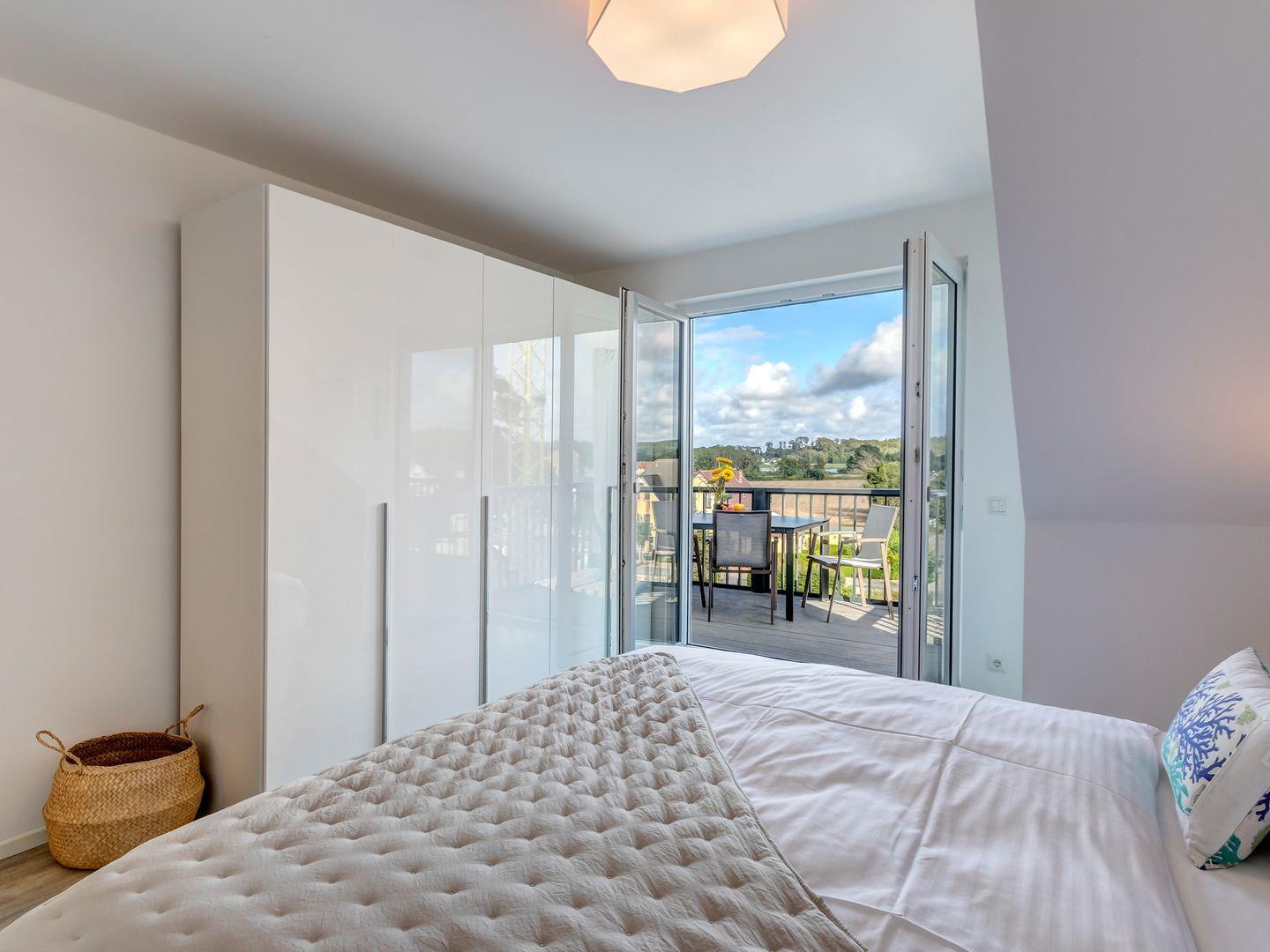Die Wohnung beeindruckt durch ihre ruhige Lage und den atemberaubenden Blick über den Kölpinsee, der sich vom eigenen, geräumigen Balkon mit Terrasse aus bestaunen lässt. Im gemütlichen Wohnbereich erwartet Sie eine voll ausgestattete Küche und ein modernes Schlafsofa – perfekt für gesellige Abende oder entspannte Stunden.