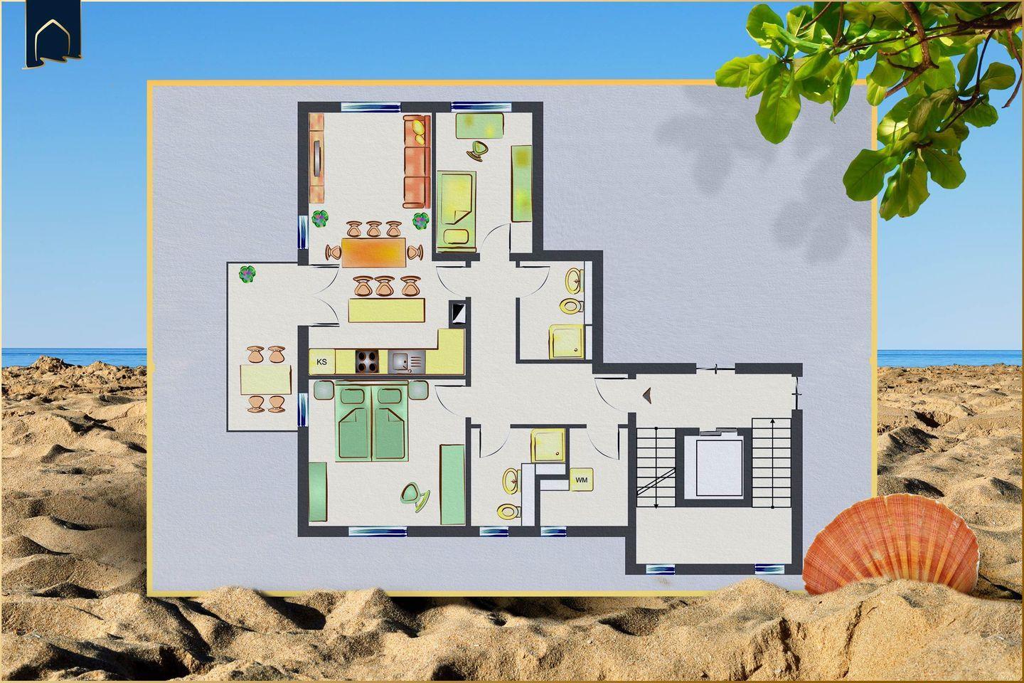 In diesem neu erbauten Appartement (2024) erwartet dich moderner Wohnkomfort auf 88?m², nur 600?Meter vom feinsandigen Ostseestrand entfernt. Das stilvolle Feriendomizil befindet sich in einer ruhigen Lage und bietet alles, was du für einen erholsamen Aufenthalt brauchst – ob mit der Familie, als Paar oder für eine Workation. Zwei Schlafzimmer, zwei moderne Badezimmer und ein zusätzliches Gäste-WC sorgen für viel Privatsphäre und Komfort.