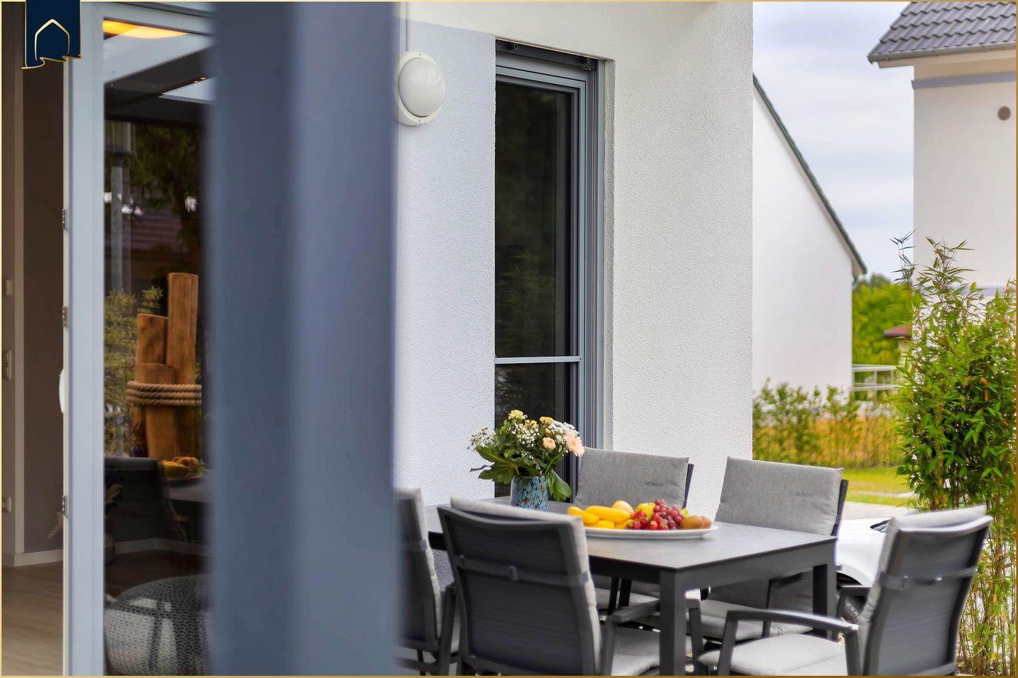 Die Lage ist ideal für Erholungssuchende und Aktivurlauber gleichermaßen: Nur etwa 700?Meter trennen Sie vom feinsandigen Ostseestrand, der bequem zu Fuß erreichbar ist. Ein idyllischer See liegt in nur 400?Metern Entfernung – perfekt für Spaziergänge oder ein kleines Picknick. Einkaufsmöglichkeiten befinden sich etwa 1300?Meter entfernt, Restaurants bereits in 400?Metern – so lässt sich der Urlaub ganz ohne Auto genießen. Der schöne Garten mit überdachter Terrasse, Gartenmöbeln und Liegewiese lädt zum Verweilen ein. Hier können Sie den Tag bei einem Glas Wein ausklingen lassen und den Blick ins Grüne genießen.