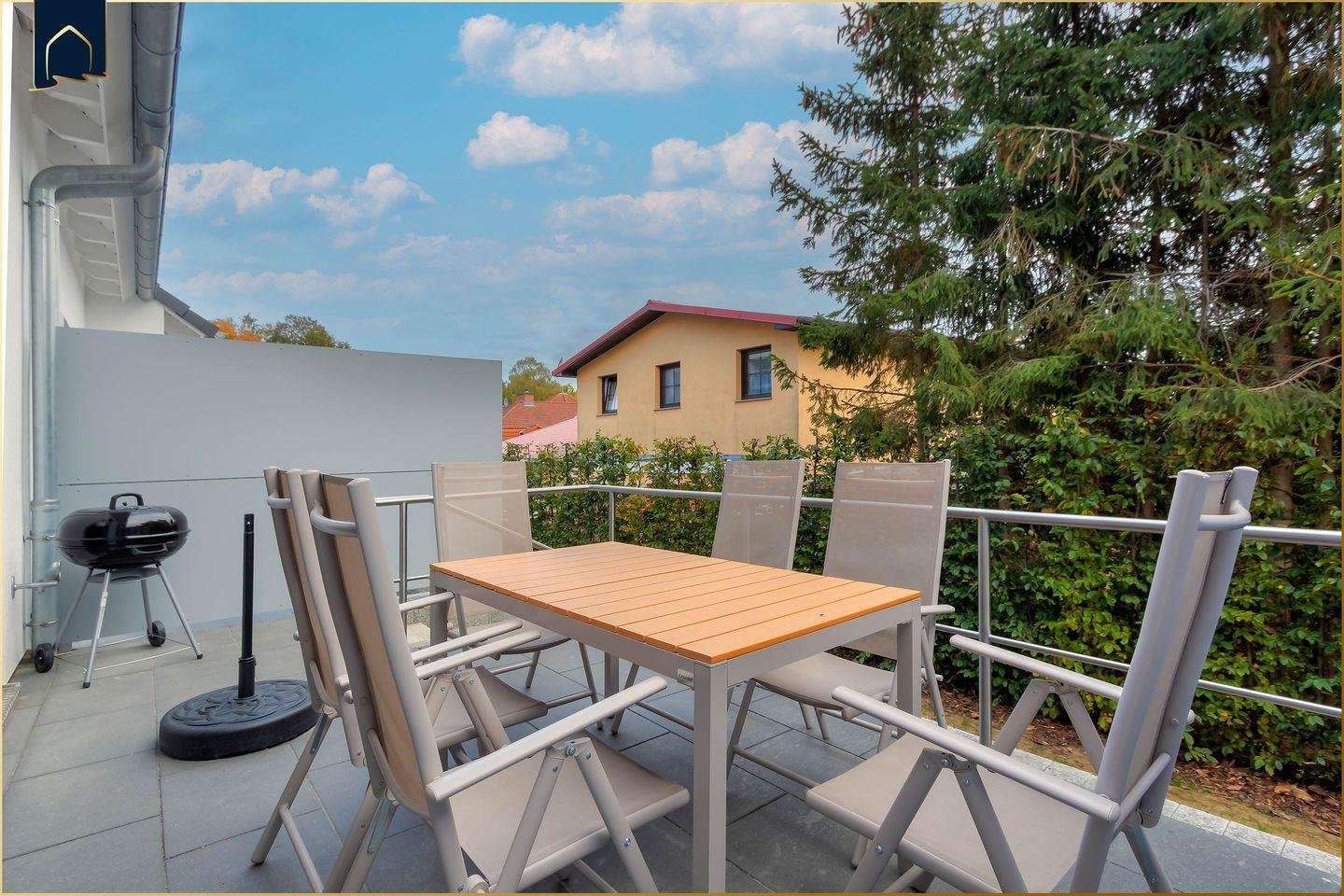 Die offene Wohnküche mit Ceranherd, Spülmaschine, Kaffeemaschine und vielem mehr lässt keine Wünsche offen und ist bestens ausgestattet, um gemeinsam zu kochen und zu genießen. Der große Esstisch lädt zu ausgedehnten Mahlzeiten mit der Familie ein. Im Erdgeschoss befindet sich zudem eines der beiden modernen Bäder mit bodengleicher Dusche.