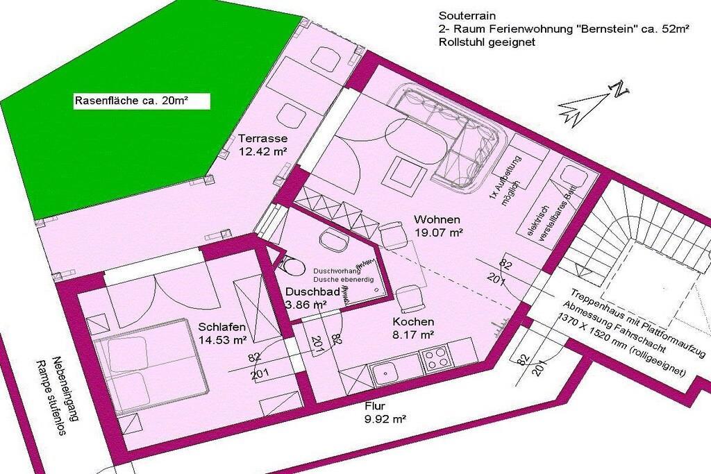 Kælderetage: (åbent køkken(, tekøkken, spisebord, kakkelovn, kogeplade, elkedel, brødrister, kaffemaskine, ovn, mikrobølgeovn, opvaskemaskine , køleskab, fryser, varme), stue / spisestue(, , enkeltseng, Fjernsyn, spisebord, DVD-afspiller, radio, CD-afspiller, varme, havemøbler), soveværelse(, dobbeltseng, varme), badeværelse(, toilet, bruser, håndvask, varme, føntørrer)) , Internetadgang, tørretumbler, vaskemaskine, varme, terrasse(havemøbler), parkering, strygebræt, strygejern, tørreskab, Vaskeripakke mod et gebyr, telefon