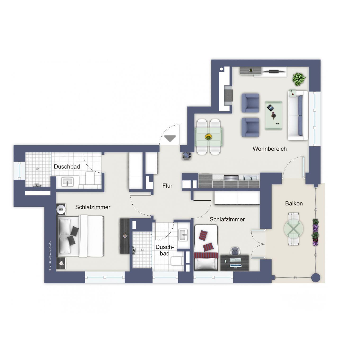 "Lohengrin" ist eine exklusive 3-Zimmer-Ferienwohnung mit ca. 70 m² im Hochparterre der Villa Rheingold in Kühlungsborn West. Du verfügst über zwei Bäder, zwei Schlafzimmer, einen Wohnbereich, eine voll ausgestattete Küche. Genieße die frische Ostseeluft und die Sonnenaufgänge auf der Terrasse mit Ostausrichtung, die vom Wohnbereich und vom Schlafzimmer aus begehbar ist.