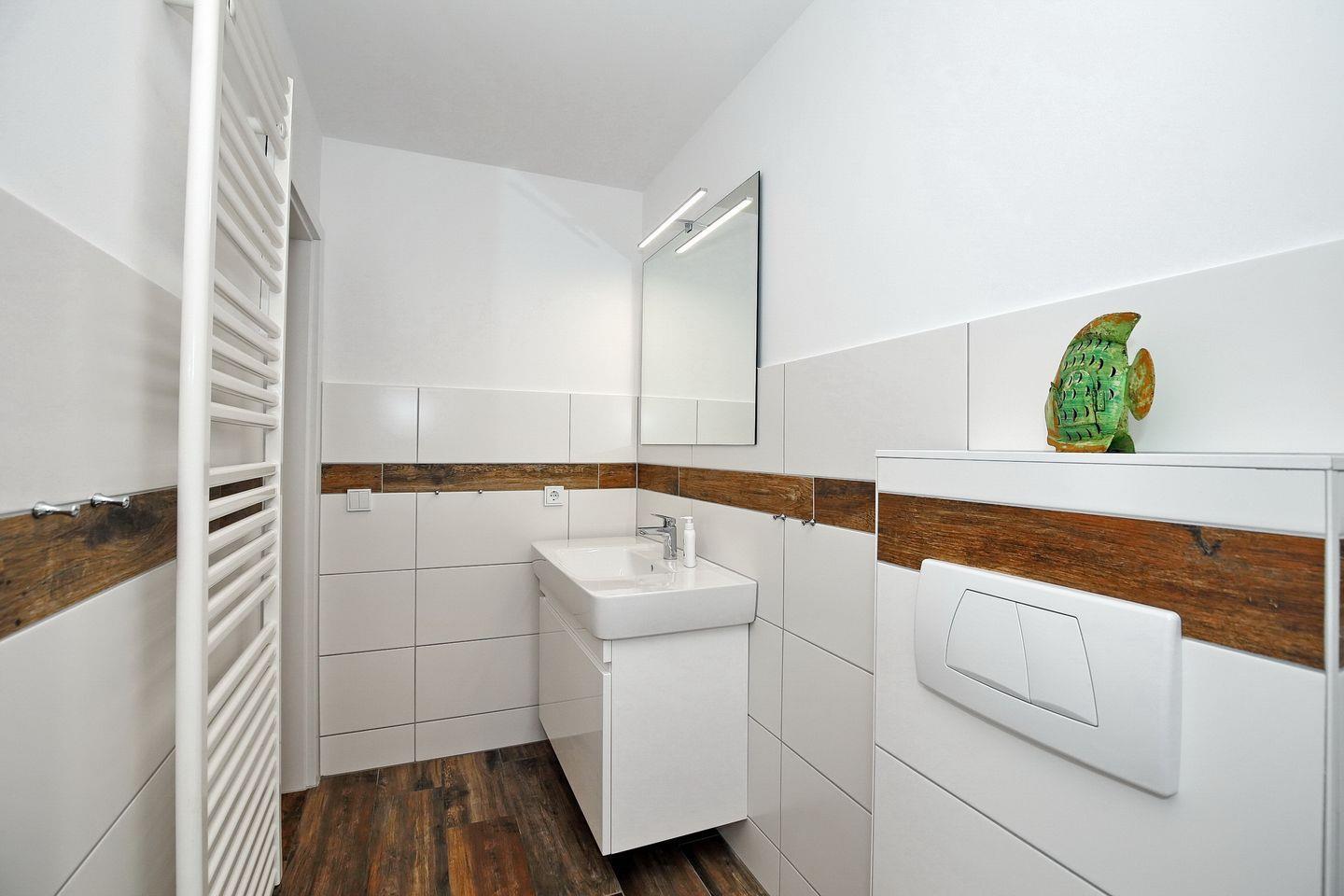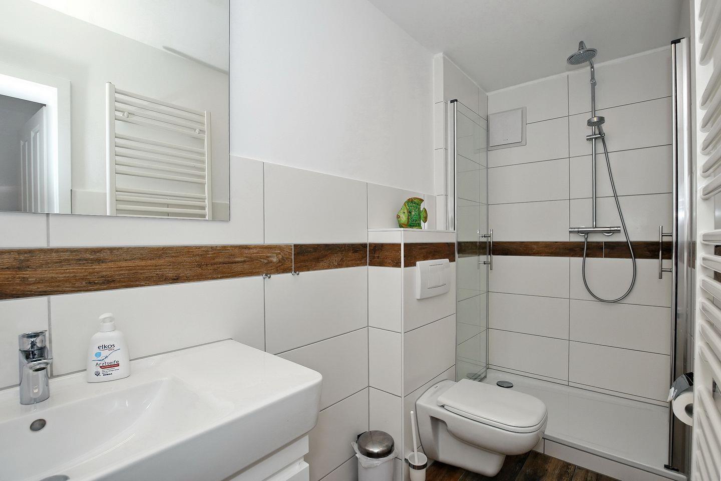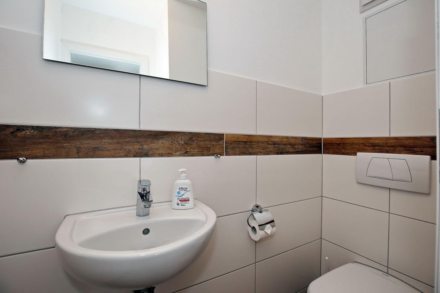 Die Ferienwohnung verfügt über ein geräumiges gefliestes Duschbad mit WC sowie über ein Gäste-WC. Für deine Waschutensilien findest du genügend Ablagefläche. In der gesamten Wohnung wurde Vinyl verlegt. In dieser Nichtraucherwohnung sind Haustiere nicht erlaubt.
