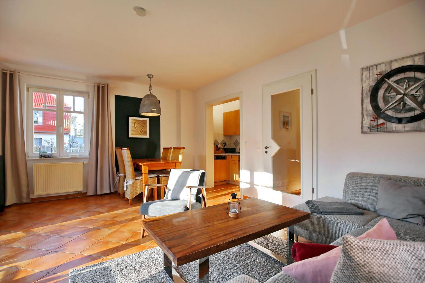 Die Ferienwohnung 01 in der „Villa Seepferdchen“ in Kühlungsborn ist eine 2-Zimmer-Wohnung für bis zu 2 Erwachsene und 1 Baby.