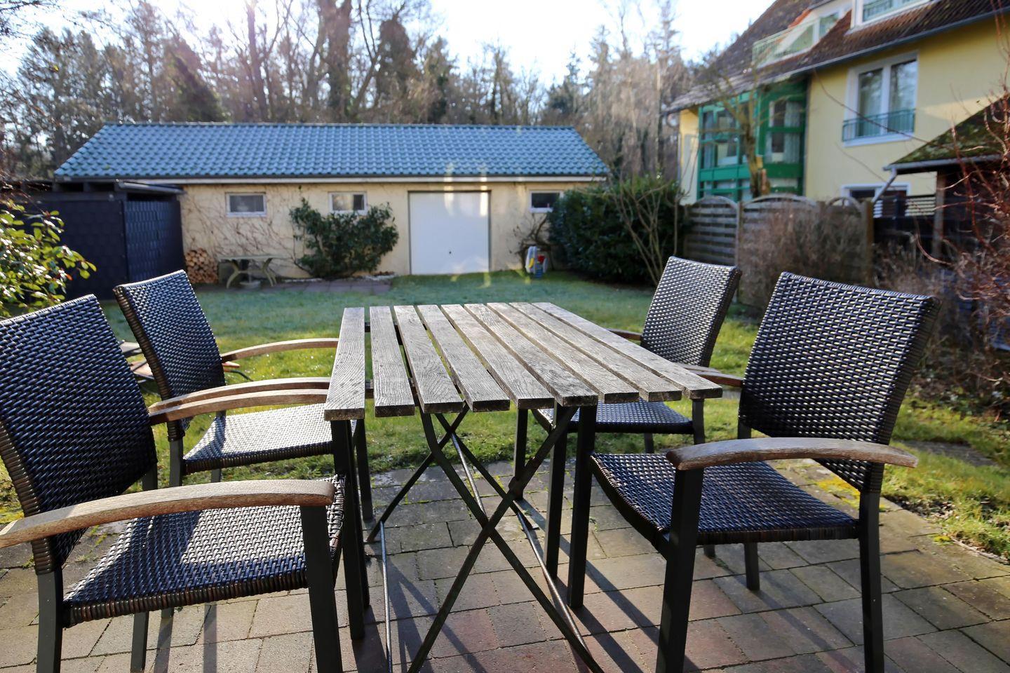 Die helle 2-Zimmer-Ferienwohnung befindet sich im Erdgeschoss auf der Südseite des Hauses Seepferdchen und wurde im Jahr 2020 komplett modernisiert. Die Wohnung bietet auf 52 m² bis zu 3 Personen Platz für einen erholsamen Urlaub und gliedert sich für dich in einen Wohn- und Essbereich, eine Küchenzeile sowie ein Schlafzimmer und ein Wannenbad. Auf der Terrasse mit Garten kannst du in aller Ruhe den Tag ausklingen lassen und den Waldblick genießen!