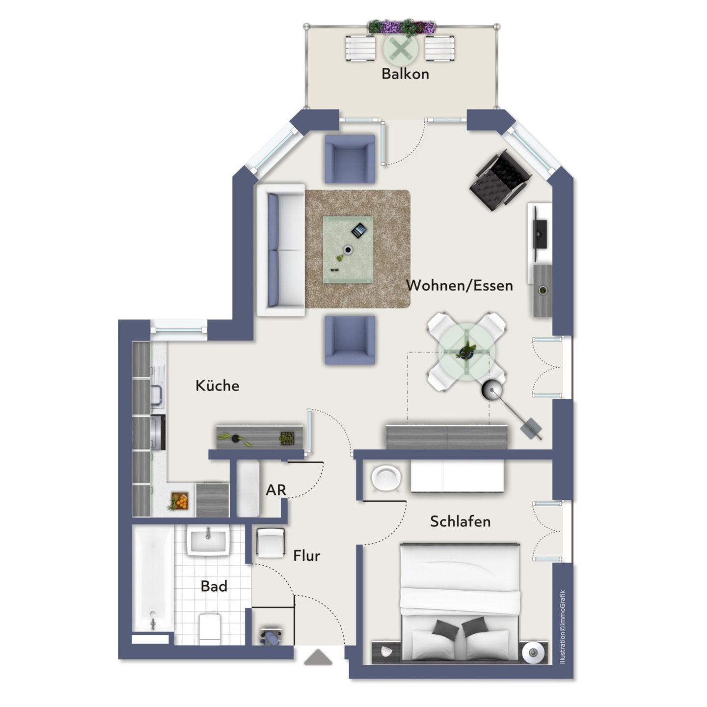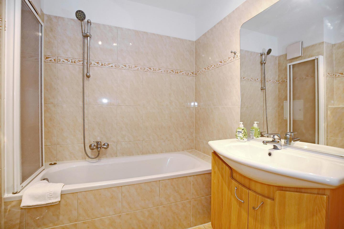 Die Wohnung verfügt über ein Wannenbad. Die Wohnung ist komplett mit Design-Belag ausgelegt.