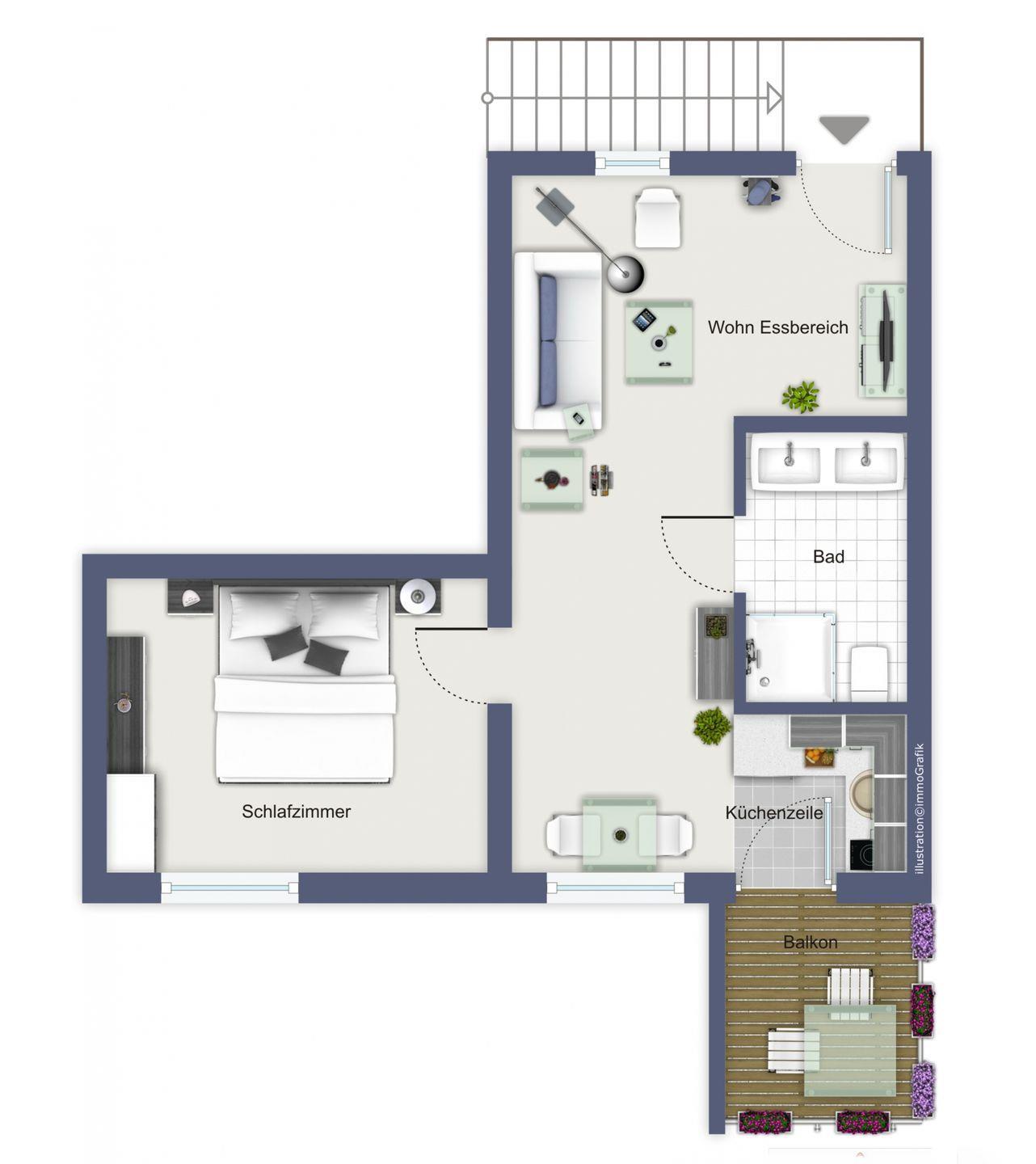 Die 36 m² große 2-Zimmer-Wohnung mit Balkon befindet sich im Obergeschoss. Die Wohnung teilt sich in einen kombinierten Wohn- und Essbereich, eine Pantry-Küche, ein Schlafzimmer und ein Duschbad auf und bietet dir und bis zu 2 weiteren Personen Platz für die Urlaubstage.