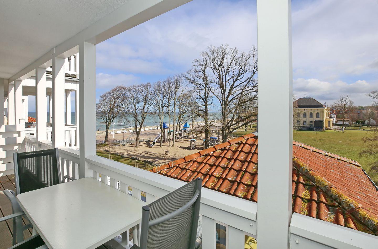 Deine gemütliche Ferienwohnung im Ostseebad Kühlungsborn befindet sich im 3. Obergeschoss, auf der Ostseite des Hauses und verfügt über einen möblierten Balkon mit seitlichem Meerblick. Mit einer Größe von 50 m² bietet die Wohnung mit einem Wohnbereich- und Essbereich, zwei Schlafzimmern, einer Küchenzeile und einem Badezimmer ausreichend Platz für einen erholsamen Ostseeurlaub. Die Entfernung zum Strand beträgt etwa 50 Meter.