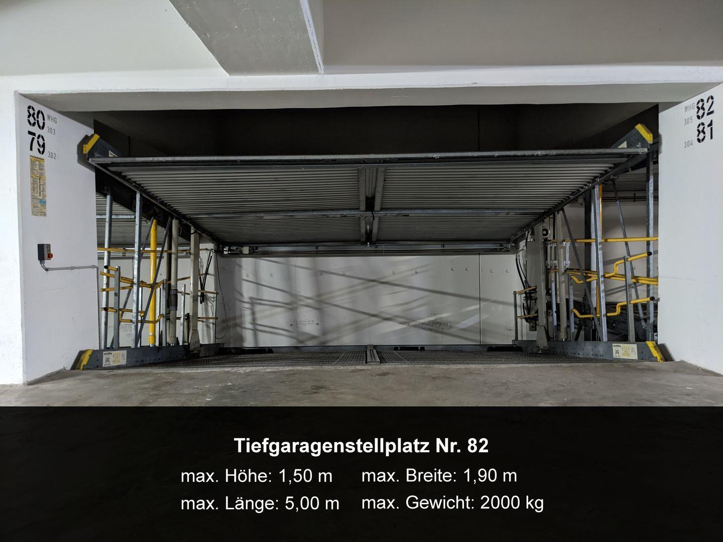 Zur Ferienwohnung gehört der Kfz-Stellplatz Nr. 82 in der Tiefgarage (max. Höhe 1,50 m, max. Gewicht 2.000 kg).