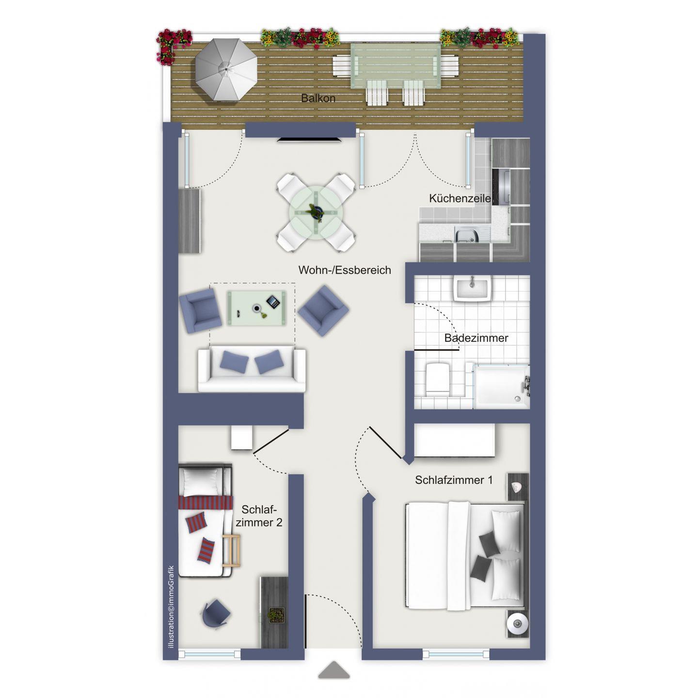 Die Ferienwohnung 305 in der Ferienanlage Meeresblick ist eine 3-Zimmer-Wohnung für bis zu 4 Personen.