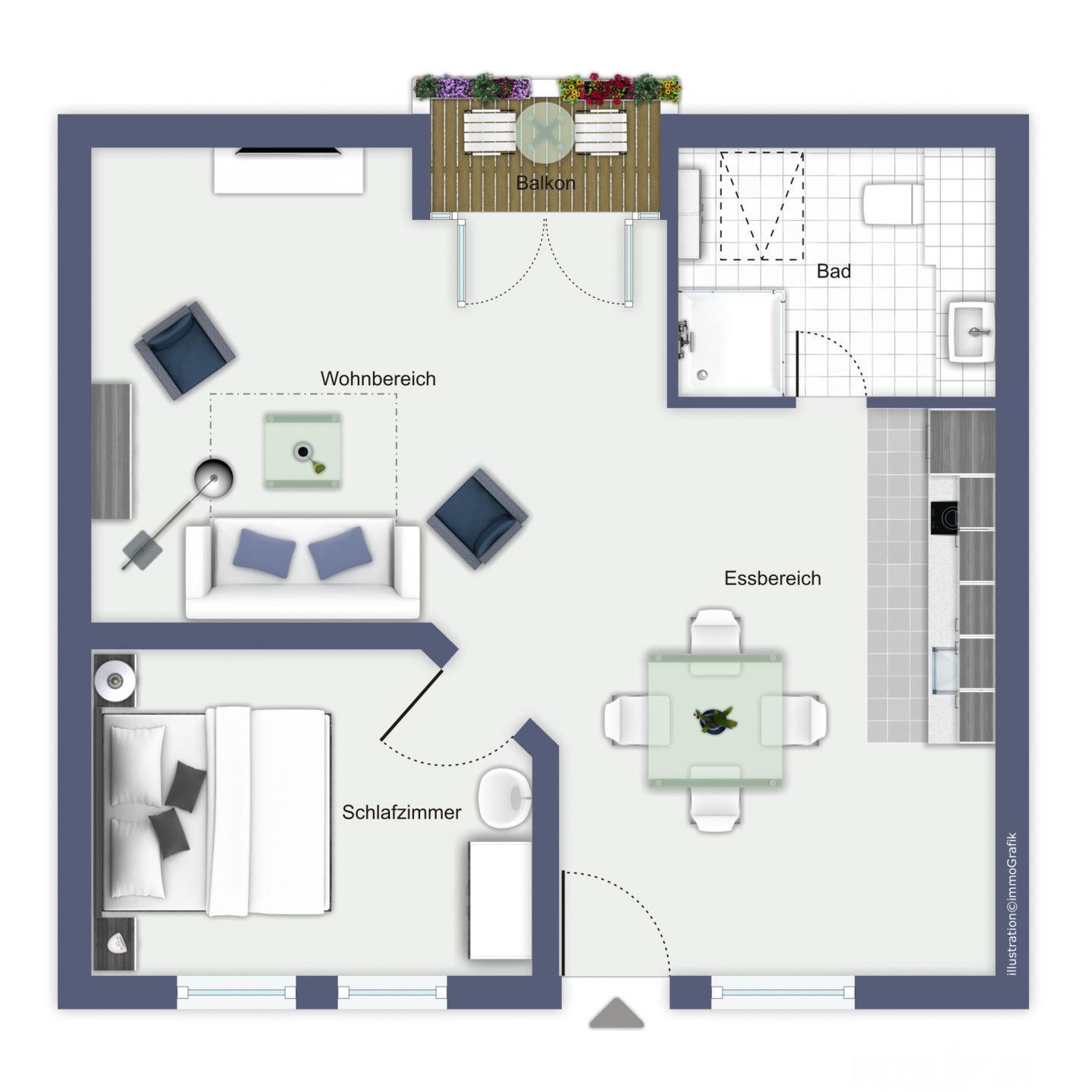 Die Ferienwohnung 502 im Haus Meeresblick ist eine 2-Zimmer-Wohnung für bis zu 4 Personen.