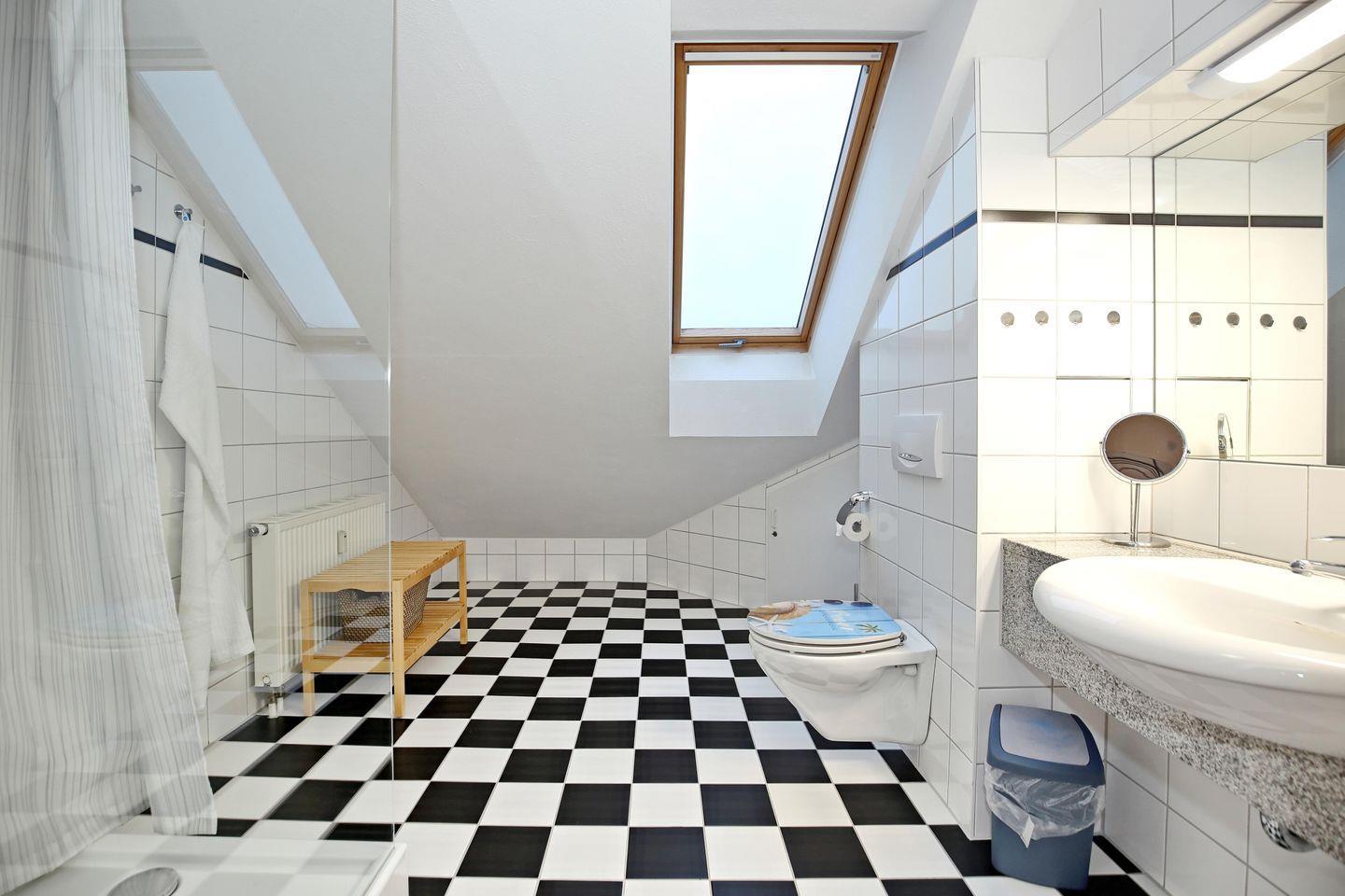 Die Ferienwohnung verfügt über ein geräumiges, tageslichtdurchflutetes Duschbad mit WC. Der durchgängige Waschtisch bietet viel Stauraum für deine Waschutensilien und einen beleuchteten Spiegel. Ein Föhn vervollständigt die Ausstattung des Bades. Der Küchenbereich sowie das Bad sind gefliest. Im Wohn- und Schlafzimmer wurde Laminat verlegt. Haustiere sind in dieser Nichtraucherwohnung nicht gestattet.