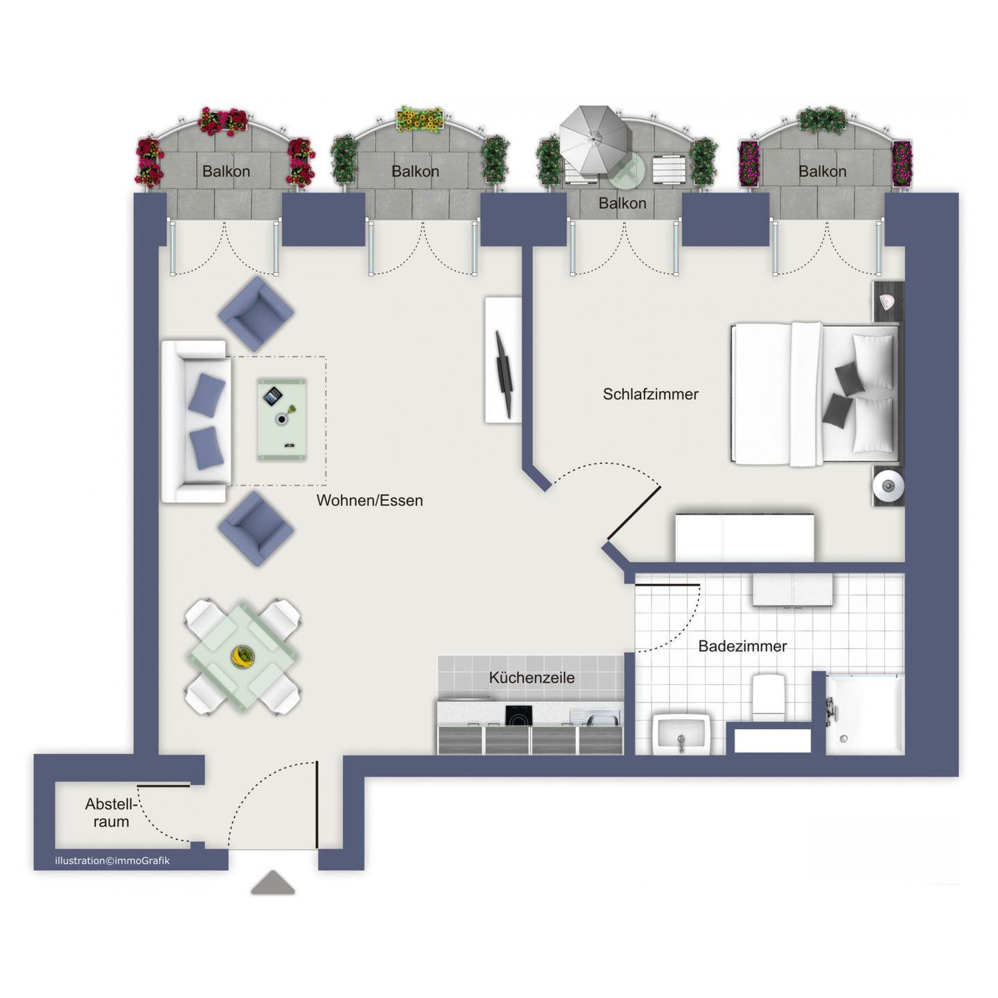 Hier wohnst du im 1. Obergeschoss gemütlich auf 52 m². Ein Fahrstuhl bringt dich bequem in die richtige Etage. Deine Ferienwohnung ist unterteilt in einen Wohnbereich mit Küchenzeile, ein Schlafzimmer und ein separates Duschbad. Die frische Ostseeluft und den Blick aufs Meer kannst du auf dem nach Osten ausgerichteten Balkon genießen. Die Entfernung zum feinsandigen Strand beträgt etwa 50 Meter.