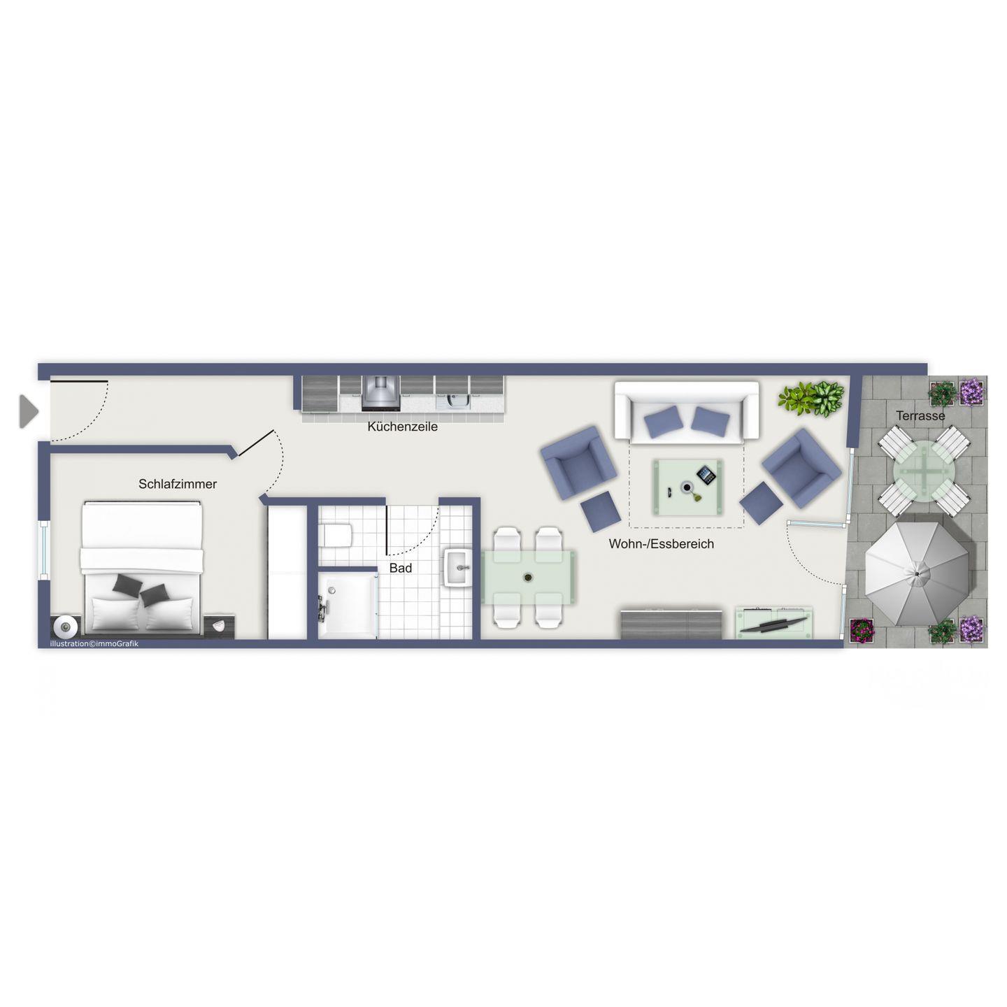 Die Ferienwohnung 019 im Haus Meeresblick ist eine 2-Zimmer-Wohnung für bis zu 4 Personen.