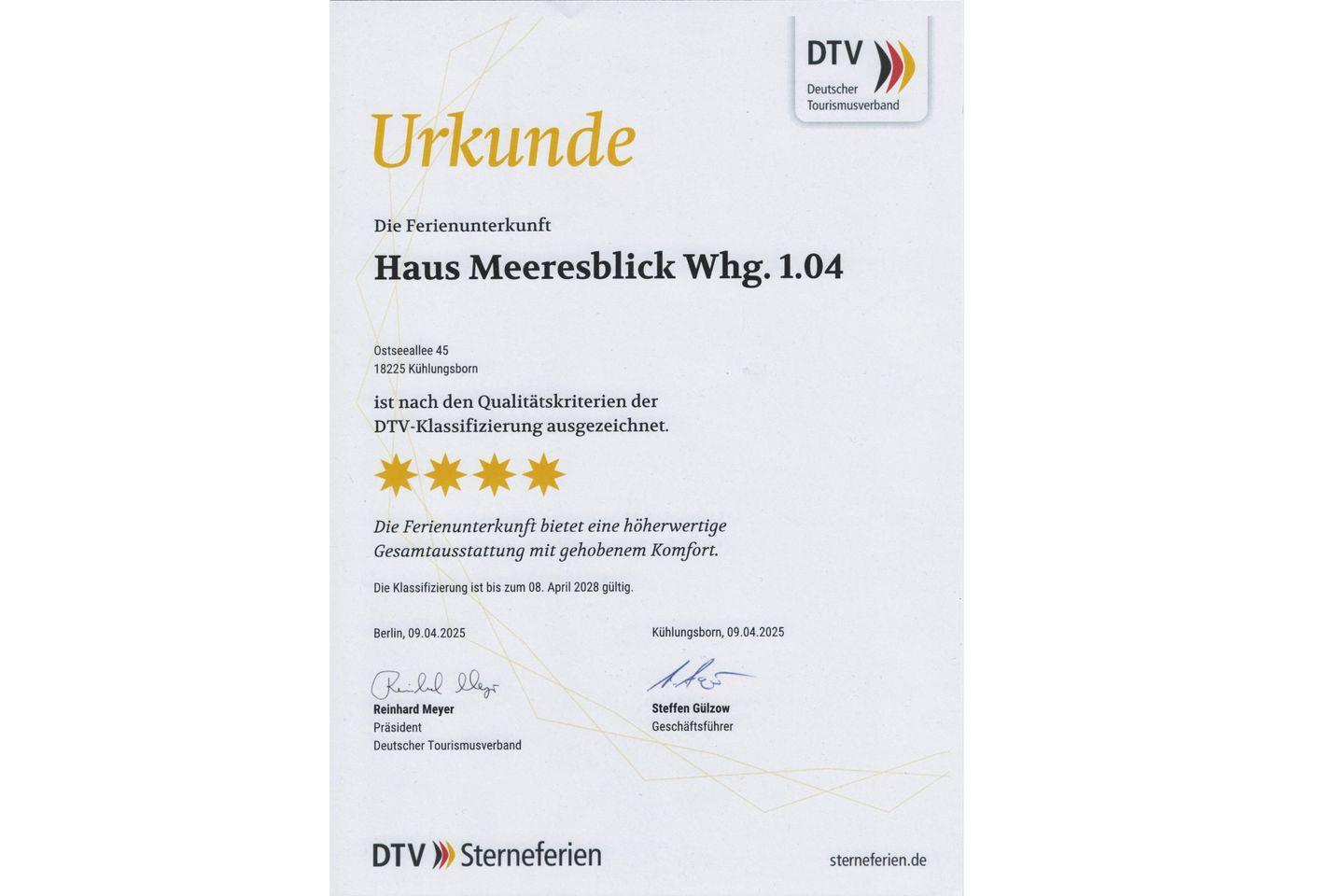 **** Bewertung vom Deutschen Tourismusverband!