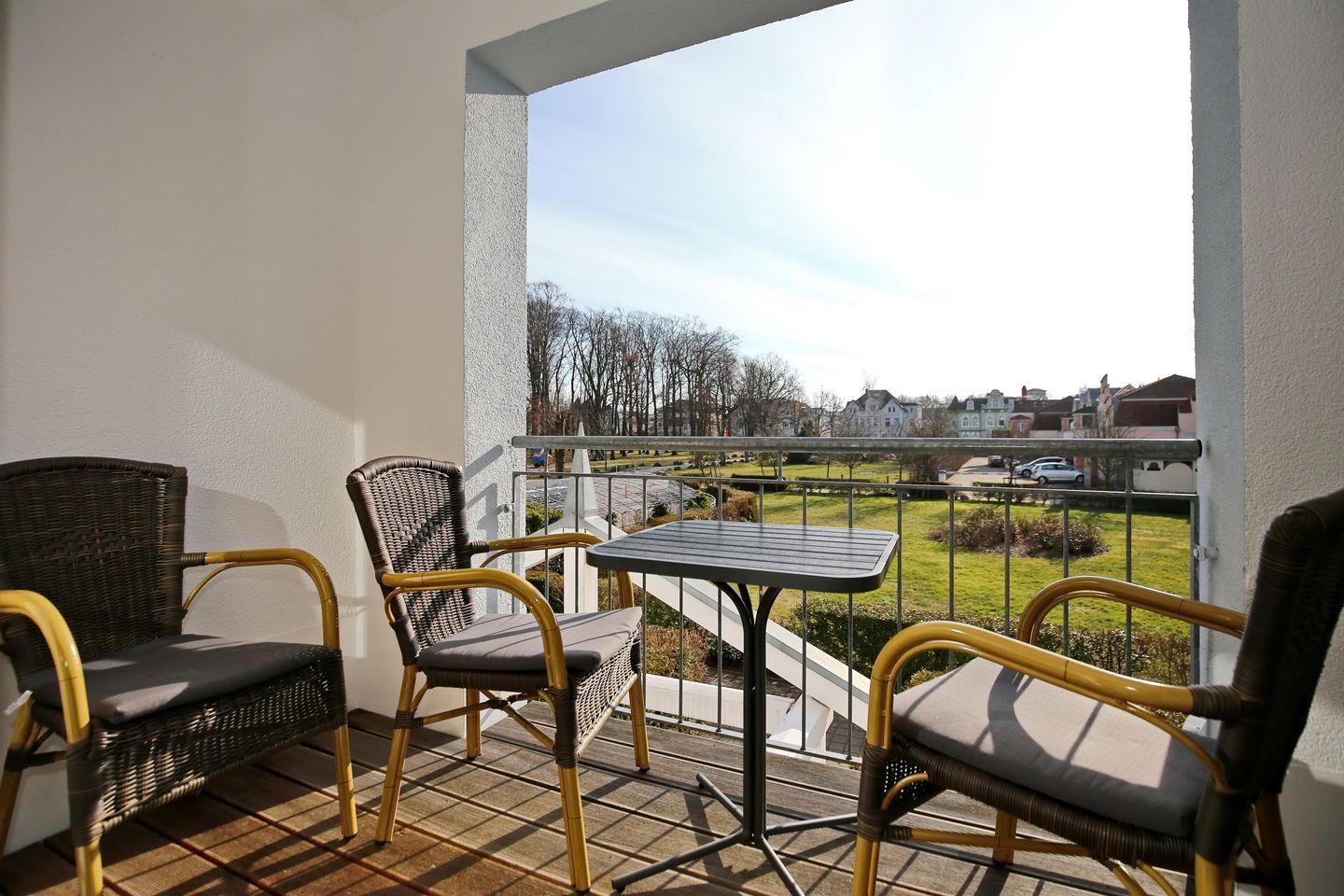 Die Ferienwohnung Nr. 112 in der Ferienanlage Meeresblick ist eine 2-Zimmer-Wohnung für bis zu 4 Personen. Die Wohnung liegt in der 1. Etage auf der Südseite des Hauses und verfügt über einen Balkon, auf dem Sie die Mittagssonne genießen können.