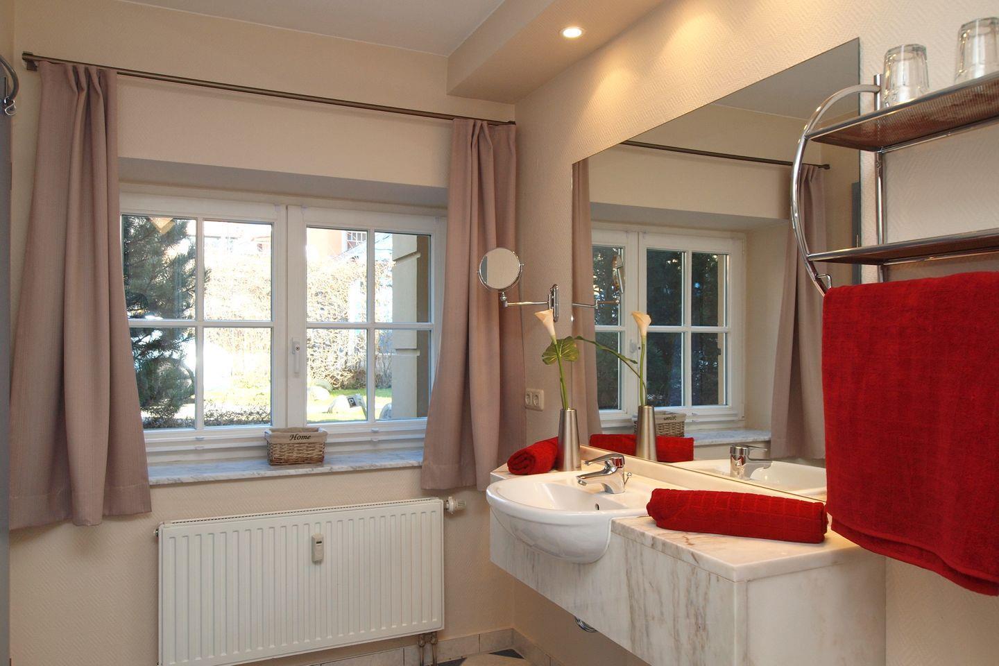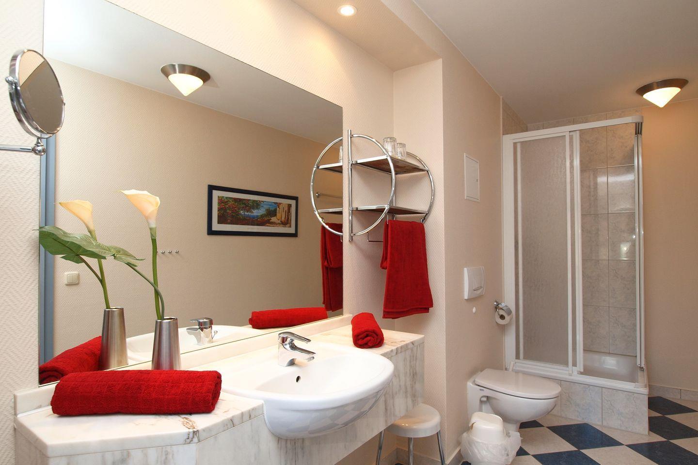 Die Ferienwohnung verfügt über ein modernes Duschbad mit WC und Kosmetikspiegel.