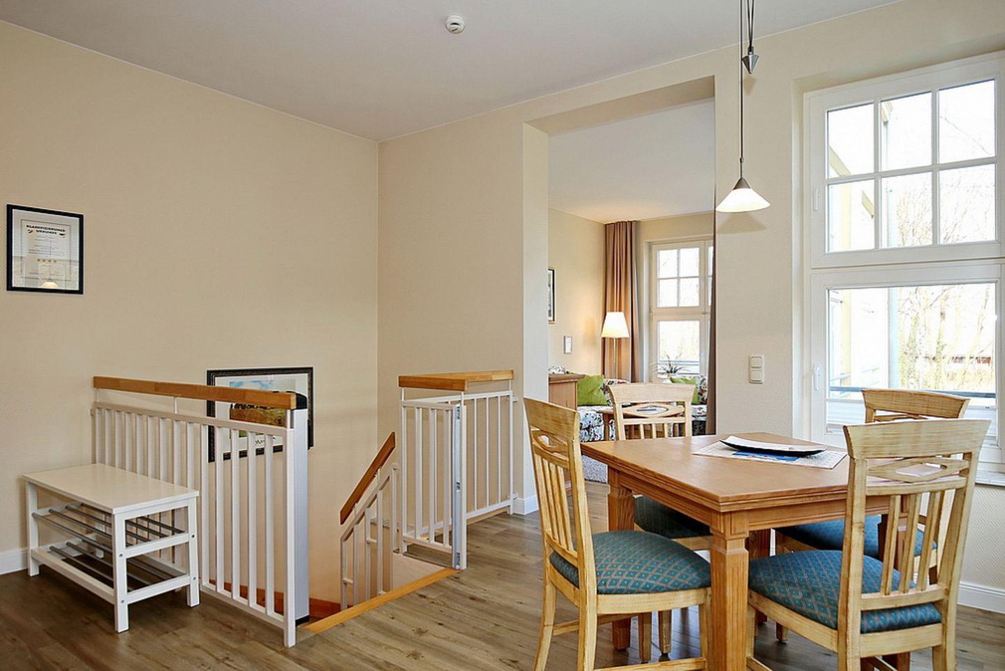 Die Wohnung Nr. 4 im Haus "La Mer" ist ein 2-Zimmer-Apartement mit einer Größe von etwa 50 m². Die Wohnung verläuft über 2 Etagen. Ein Fahrradraum steht für die Gäste bereit.