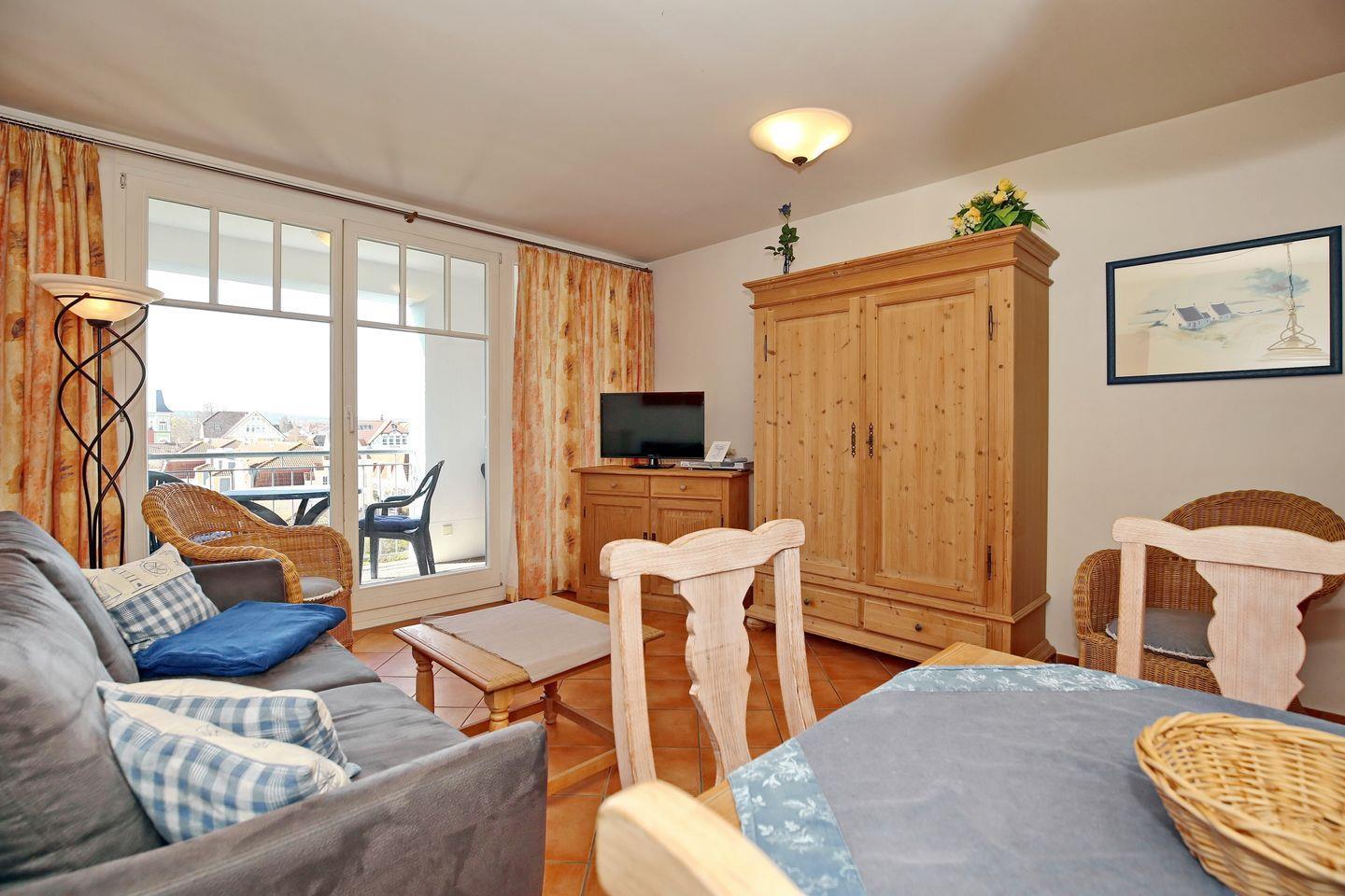 Die Ferienwohnung Nr. 310 in der Ferienanlage Meeresblick ist eine 2-Zimmer-Wohnung für bis zu 4 Personen. Die Wohnung liegt in der 3. Etage auf der Südseite des Hauses und verfügt über einen Balkon, auf dem Sie die Mittagssonne genießen können.