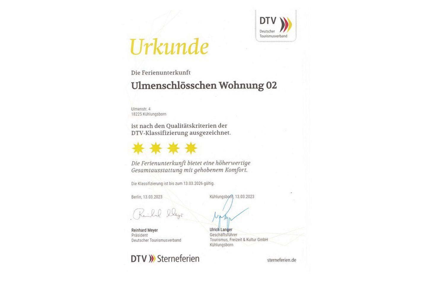 **** Bewertung vom Deutschen Tourismusverband!