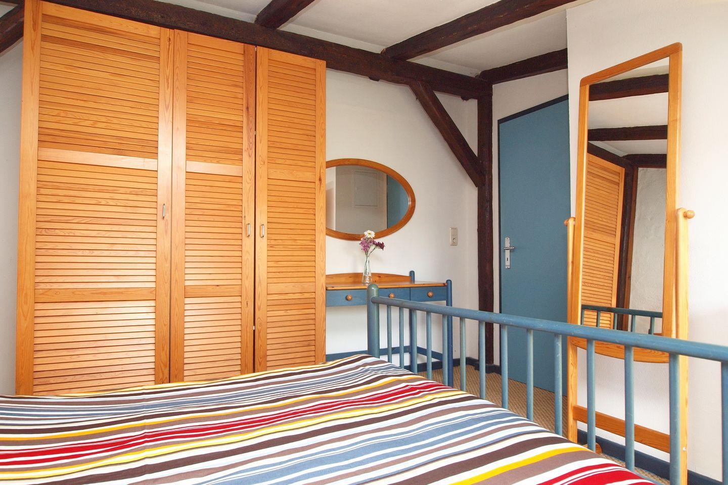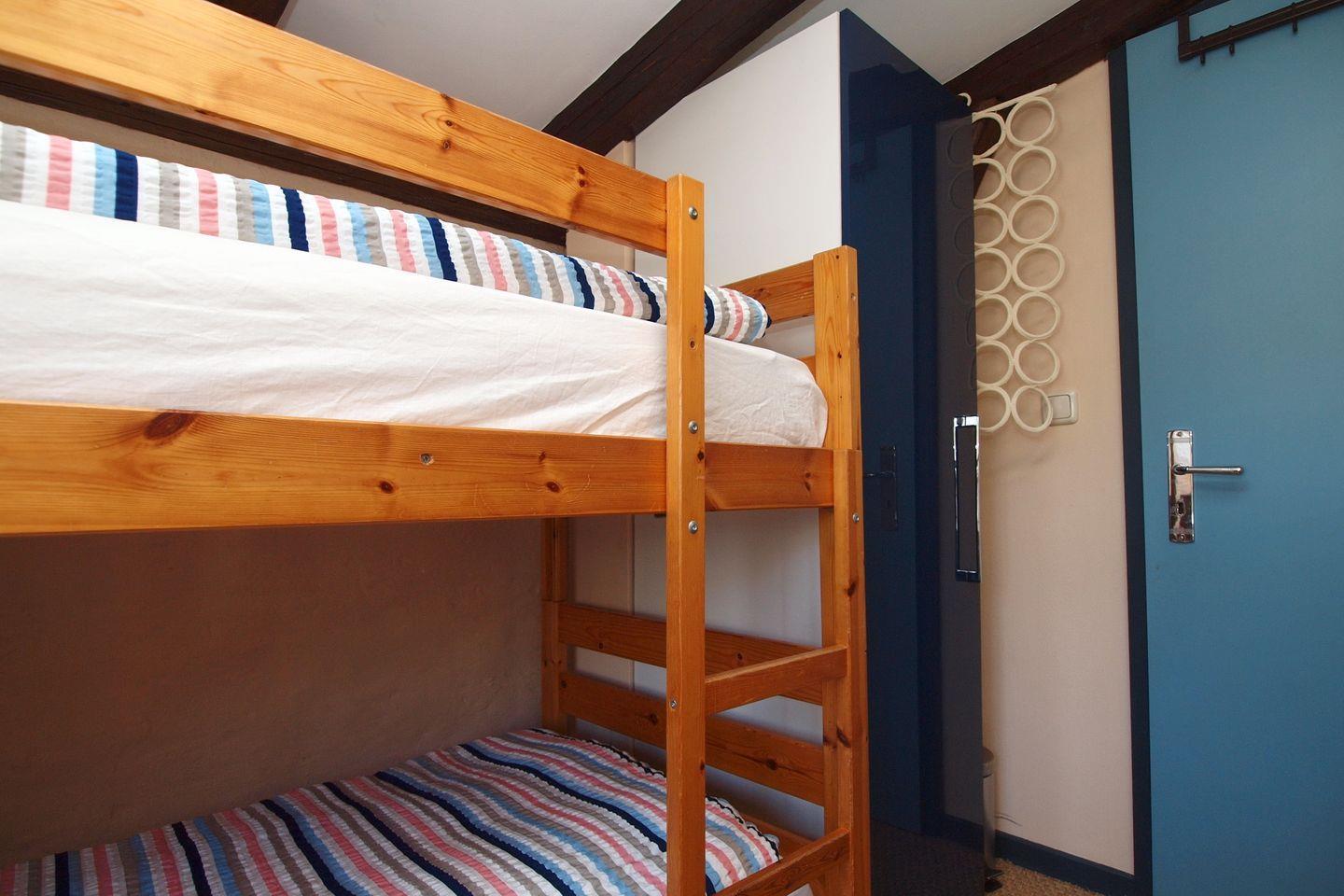 Die zwei Schlafzimmer der Ferienwohnung laden zu erholsamen Nächten ein. Das erste Schlafzimmer ist mit einem bequemen Doppelbett (2 x 80 x 200 cm) und zwei Nachttischen eingerichtet. Ein großer Kleiderschrank bietet Stauraum für dein Urlaubsgepäck. Im zweiten Schlafzimmer befinden sich ein Etagenbett sowie ein Einzelbett (1 x 80 x 200 cm). Für deine Sachen steht dir hier zusätzlich ein kleiner Kleiderschrank zur Verfügung. Vorhandene Vorhänge und Jalousien kannst du hier als Sichtschutz bzw. zum Verdunkeln nutzen.