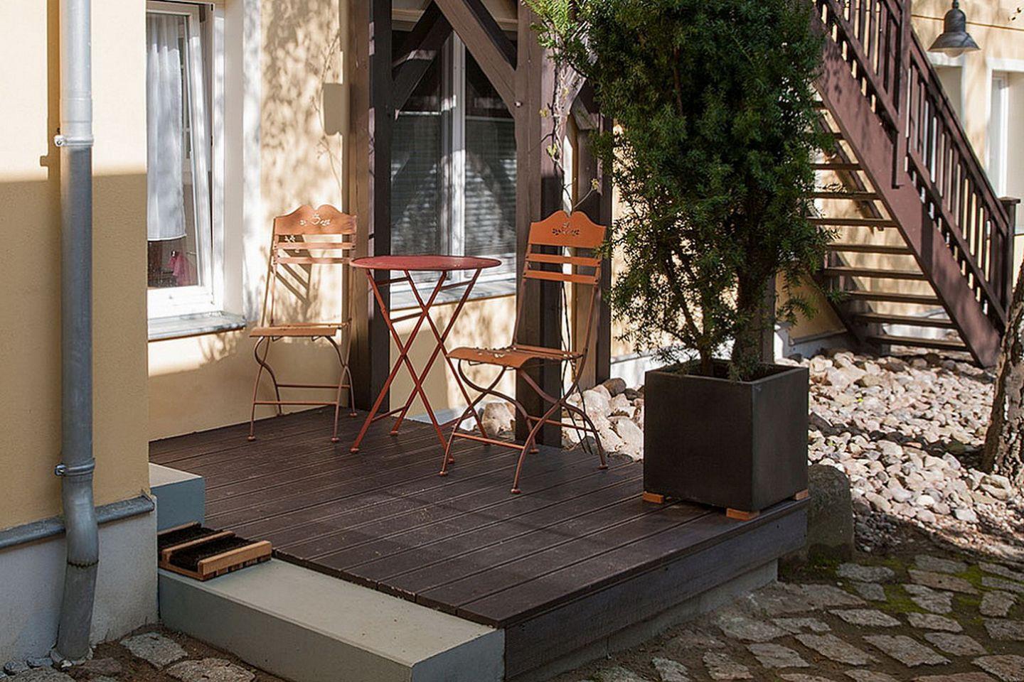 Die Ferienwohnung 03 in der Ferienanlage "Auf den Höfen" ist eine 2-Zimmer-Wohnung für bis zu 2 Personen. Die 33 m² große Ferienwohnung liegt im Erdgeschoss und verfügt über eine Terrasse.