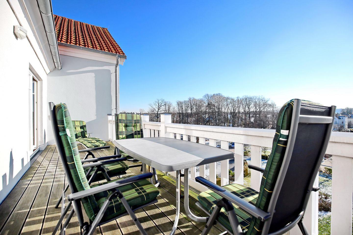 Beste Voraussetzungen für einen fantastischen Urlaub bietet dir die Wohnung 410 des Hauses Meeresblick. Die exklusive und ausgesprochen ruhige Lage des Hauses und die anspruchsvolle Ausstattung dieser geräumigen 3-Zimmer-Ferienwohnung lassen kaum Wünsche offen. Als i-Tüpfelchen gibt es einen großzügigen Südbalkon (ca. 15 m²) mit Blick in Richtung Park.