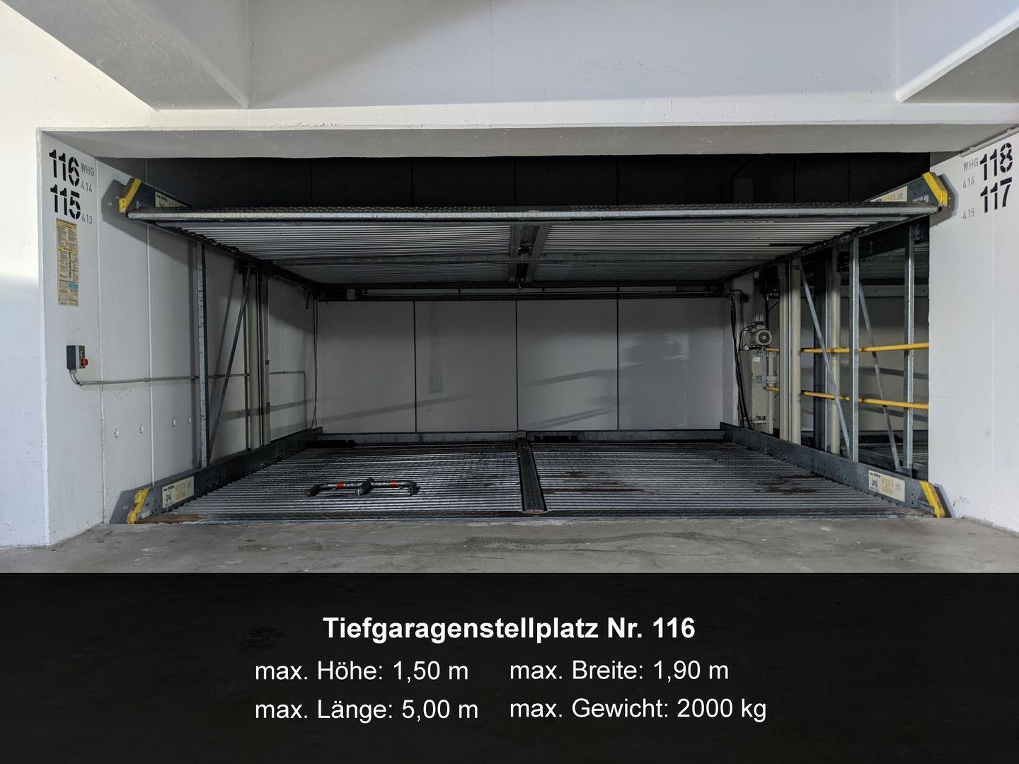 Münzwaschmaschine und Wäschetrockner findest du in der Tiefgarage, wo auch dein Tiefgaragenstellplatz Nr. 116 (max. Höhe: 1,50 m, max. Breite: 1,90 m, max. Länge: 5,00 m, max. Gewicht: 2000 kg) zur Verfügung steht.