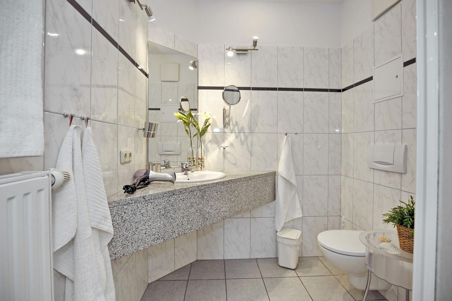 Das Bad der Ferienwohnung ist für dich mit einer Dusche, einem WC, einem Föhn sowie einem Kosmetikspiegel ausgestattet.