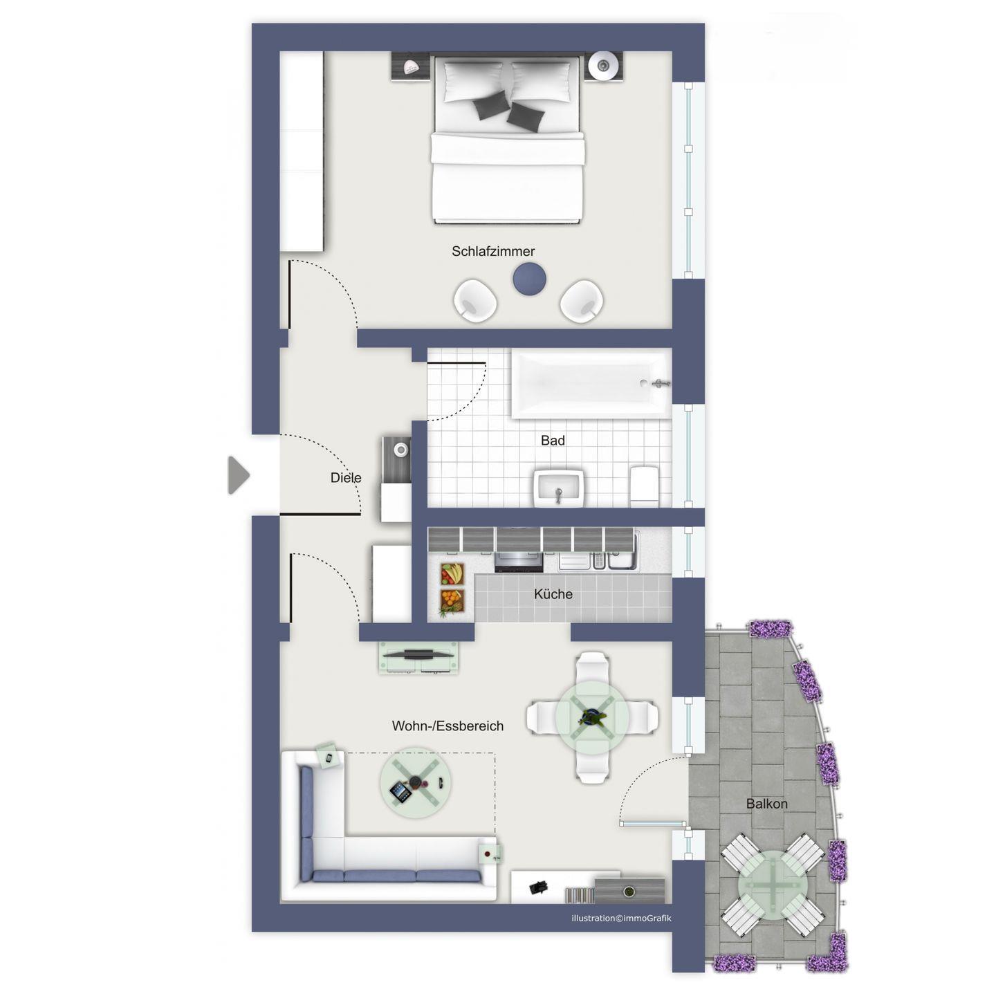 Die 49 m² große 2-Zimmer-Ferienwohnung ist Teil des "Dünengartens" in Kühlungsborn und befindet sich im 2. Obergeschoss des Aufgangs B. Die Wohnung, genannt "Sonne und Meer", ist in einen kombinierten Wohn- und Essbereich, eine Küchenzeile und ein Badezimmer aufgeteilt und bietet bis zu 2 Personen Platz. Auf dem Balkon mit Ost-Ausrichtung kannst du die Sonnenaufgänge und den Teilseeblick genießen. Der hauseigene Strandzugang ist nur ca. 60 Meter entfernt.