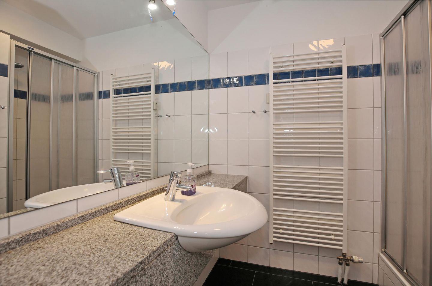 Die Ferienwohnung verfügt über ein gefliestes Duschbad mit WC und Föhn.
