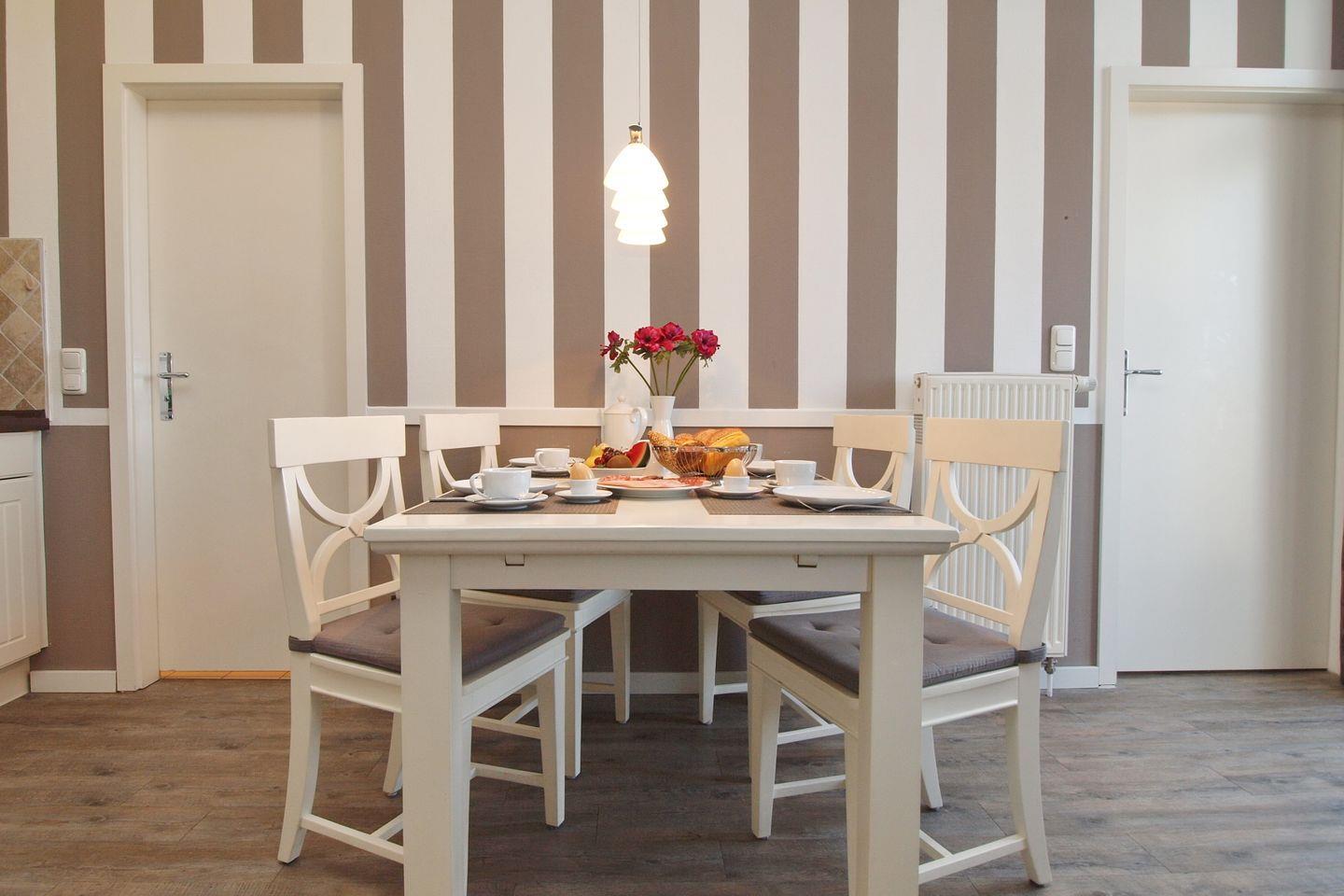Die Wohnung ist ideal für 4 Personen und der zur Wohnung gehörende Parkplatz Nr. 29 befindet sich direkt hinter dem Haus. Fahrradraum, Münz-Waschmaschine und -Trockner findest du im Keller.