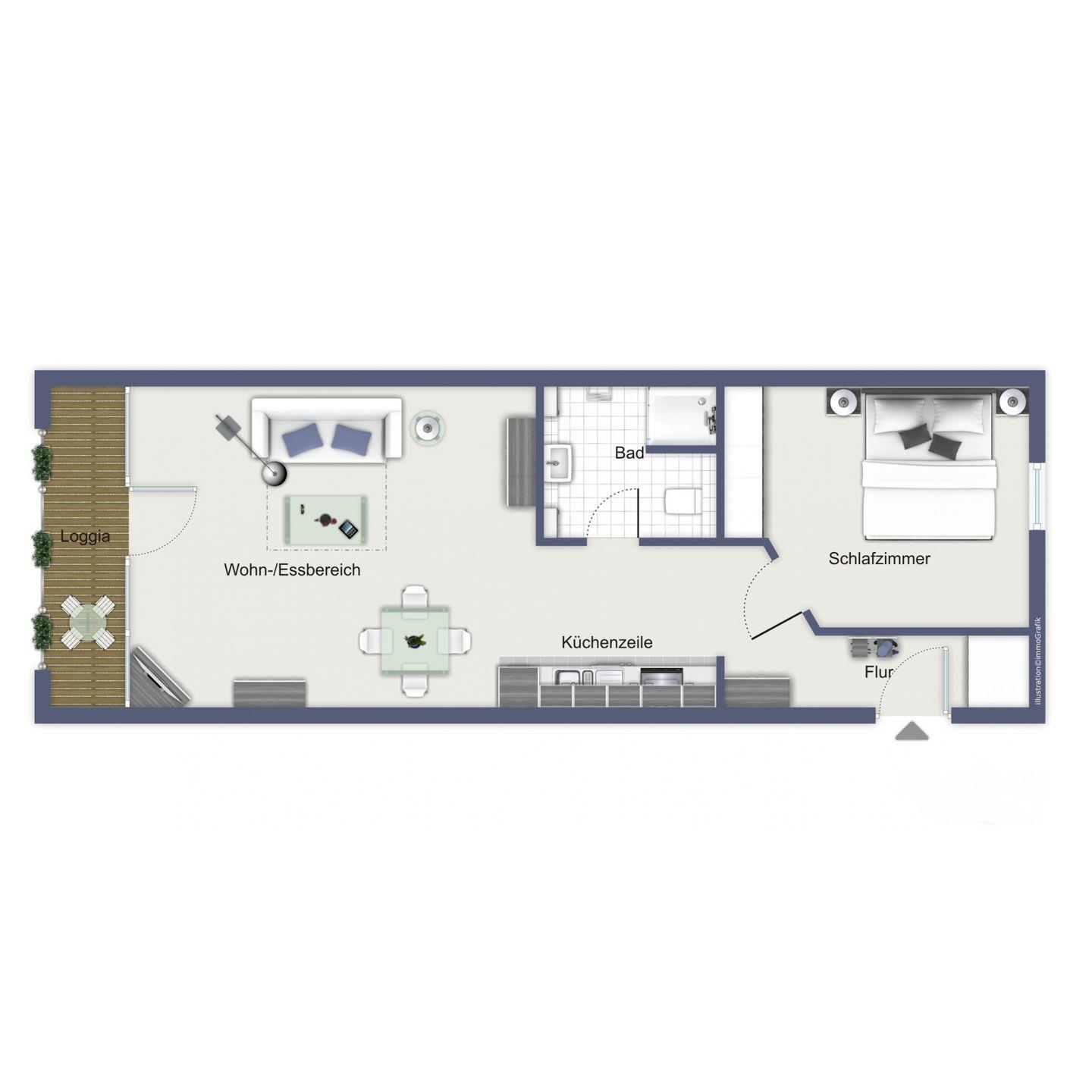 Die Ferienwohnung 116 in der Ferienanlage Meeresblick ist eine 2-Zimmer-Wohnung für bis zu 3 Personen.