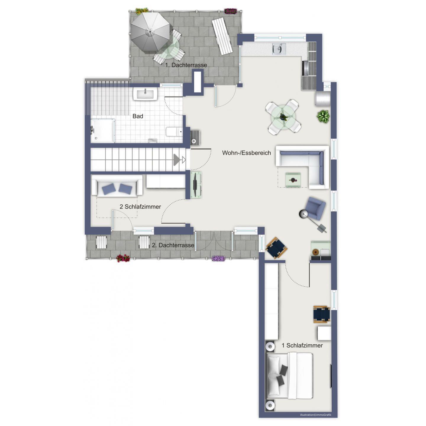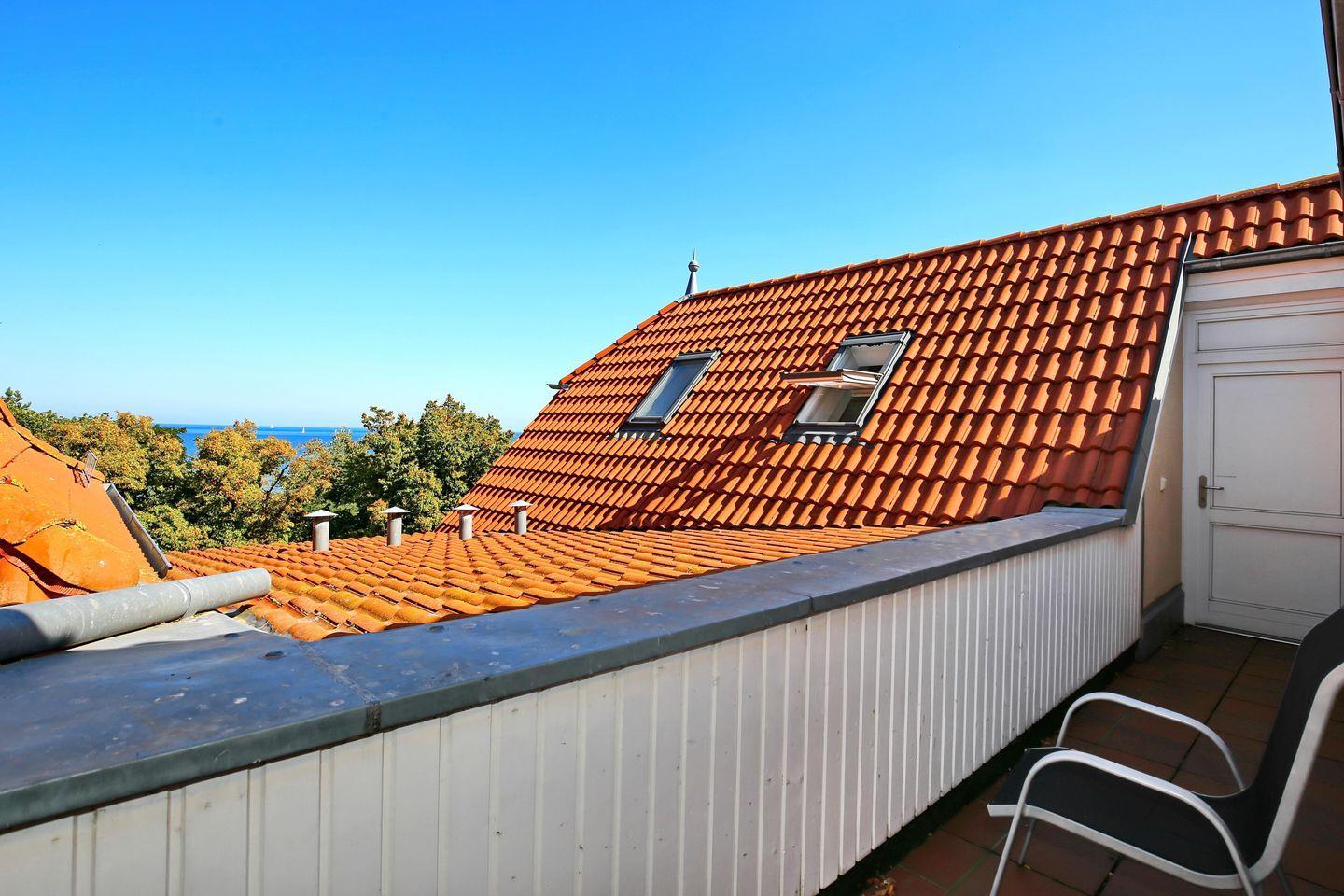 Erlebe in der 3-Zimmer-Wohnung mit bis zu 5 Personen entspannte Urlaubstage in Strandnähe. Die Ferienwohnung befindet sich im 4. Obergeschoss und ist mit einem Fahrstuhl allerdings nur bis zum 3. OG erreichbar (die Treppe hat keine Kindersicherung). Auf 74 m² ist die Ferienwohnung für dich in einen Wohn- und Essbereich, eine Küchenzeile, zwei Schlafzimmer und ein Duschbad aufgeteilt. Von einer Dachterrasse aus hast du direkten Meerblick. Auf der zweiten Dachterrasse mit Südausrichtung kannst du die Sonnenstunden des Tages im Strandkorb genießen. Bis zum feinsandigen Strand und zur Strandpromenade gehst du nur 50 Meter.