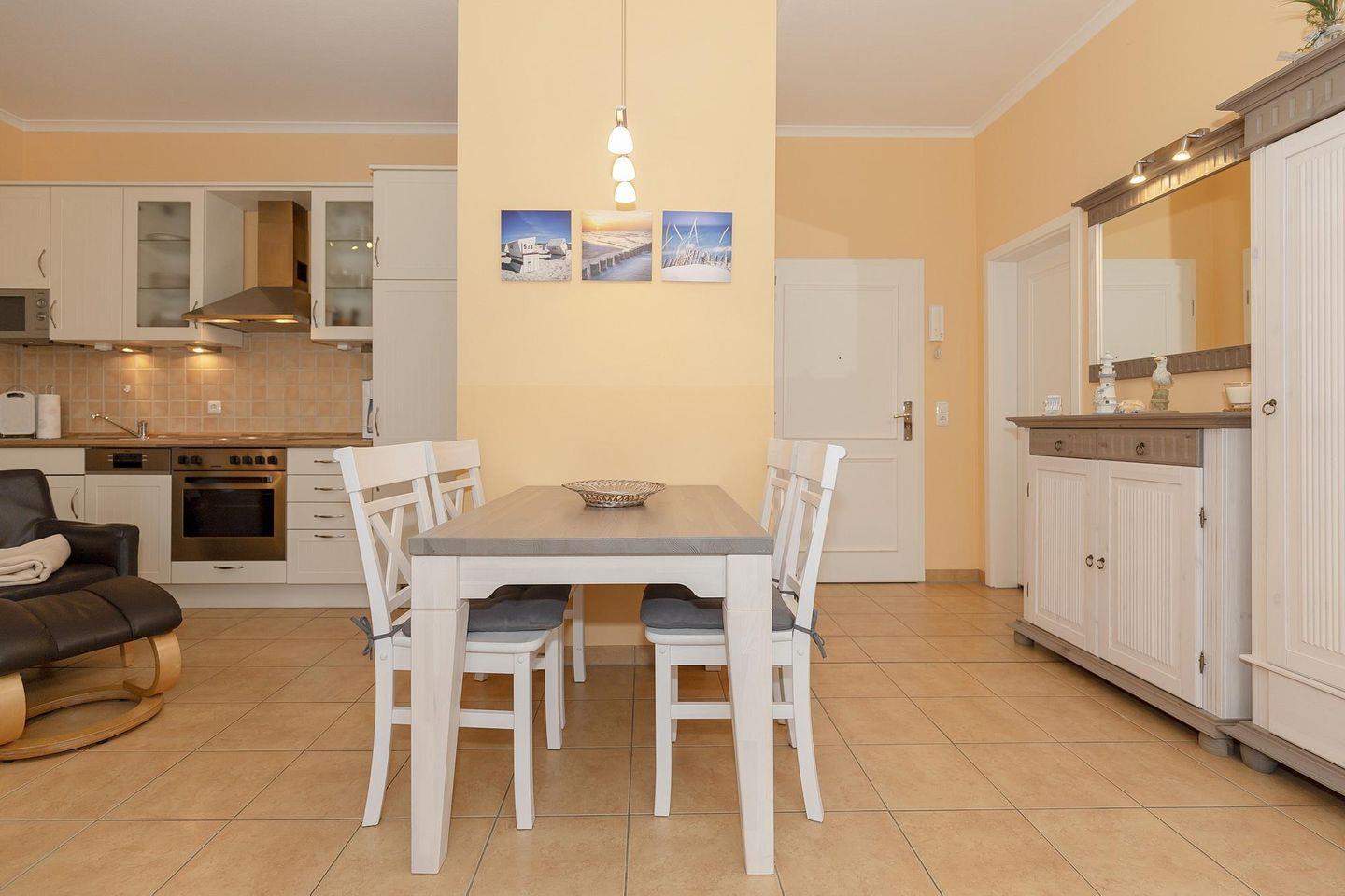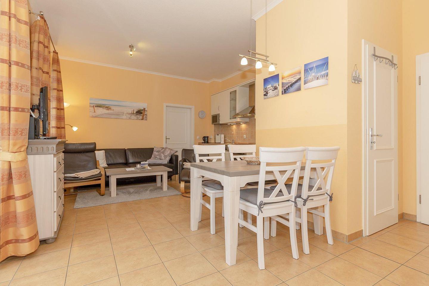 Die 56 m² große 3-Zimmer Ferienwohnung ist für bis zu 4 Personen geeignet. Besonders hervorzuheben ist die tolle Lage zwischen Ostseestrand, Promenade und Stadtwald sowie der sonnige Südbalkon des Apartments.