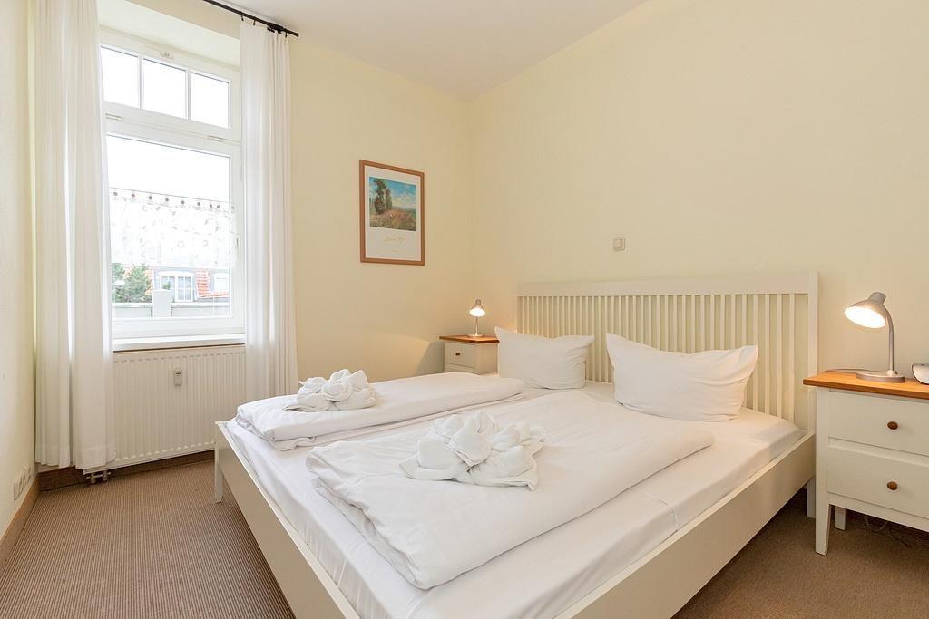 Das gemütliche Nichtraucherapartment verfügt über kostenfreies WLAN. Der Wohnbereich mit Doppelschlafcouch (1,60 m x 2,00 m), bietet eine voll ausgestattete offene Küchenzeile mit Kaffeemaschine, Toaster, Wasserkocher, Mikrowelle und Backofen sowie einen Flatscreen-TV und eine HiFi-Anlage. Das separate Schlafzimmer verfügt über ein Doppelbett (1,80 m x 2,00 m). Nach einem erlebnisreichen Urlaubstag entspannt ihr auf dem mit Gartenmöbeln ausgestatteten Balkon mit Ausblick nach Osten. Ein Kinderbett kann gegen Entgelt aufgestellt werden und auf Wunsch könnt ihr einen Hochstuhl hinzubuchen.